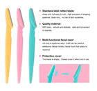 About this item Package includes: 15 stainless steel eyebrow razor, 3 kinds of bright colors, 15*1.7cm Precision: when you decide to choose the best face razor for you, special grain blade design achieves precision, clean trim without risk of skin scratches. High quality: stainless steel blade +ABS resin + protective cover , sharp and not easy to rust, smooth and delicate feel, safe and convenient to operate Essential for home travel: lightweight and compact, portable, you can put it anywhere you want, such as the bedroom, bathroom, washstand, makeup bag, hotel, etc Warm tips: keep out of reach of children. the blade is sharp , please cover it when not in use. Report an issue with this product or seller