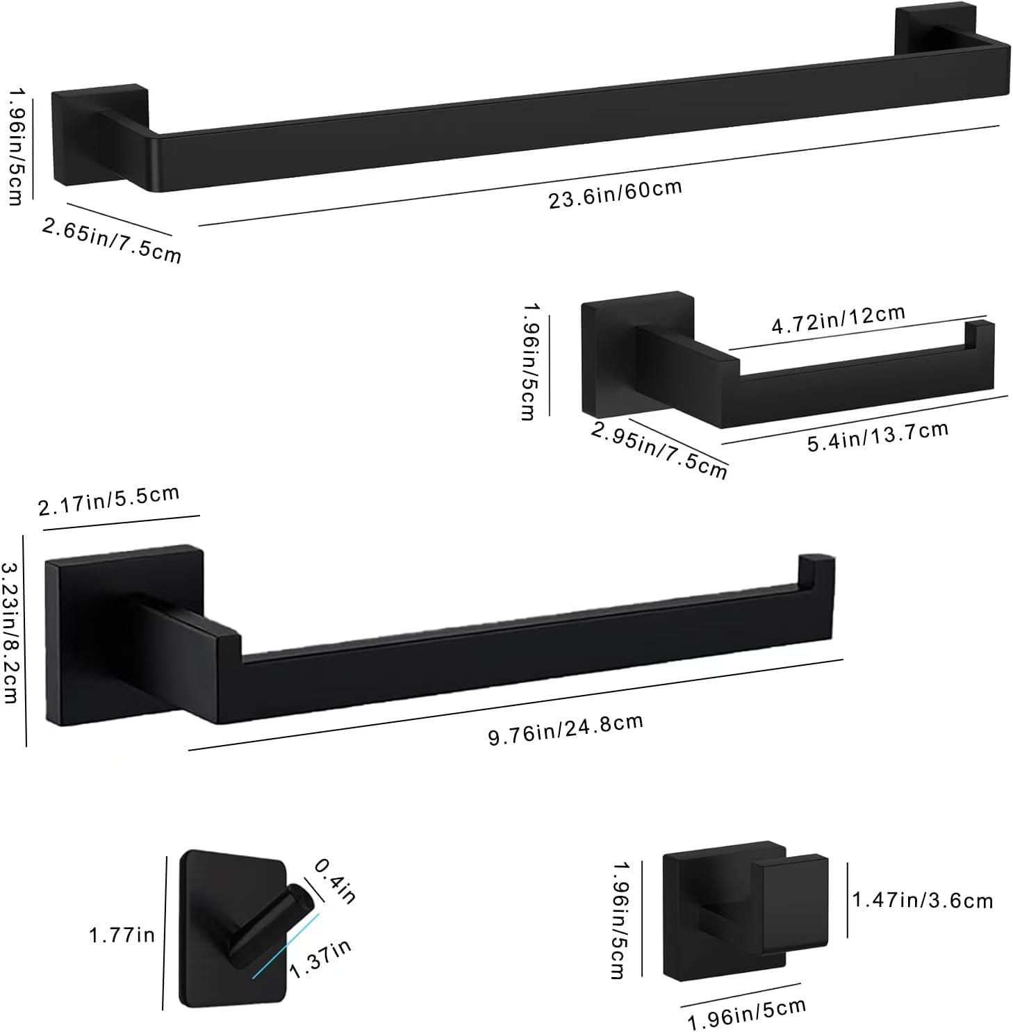 Store New Arrivals Add to Favorite View Feedback Contact 15-Pieces Matte Black Bathroom Accessories Set, Stainless Steel Bathroom Hardware Set, Towel Racks for Bathroom Wall Mounted 24 Inch Bath Towel Bar Set. Description Color Matte Black Product Dimensions 24"L x 2.3"W x 4"H Material Metal Item Weight 3.16 Kilograms Installation Type Wall-Mounted Shape Square Finish Type Painted Size 15sets-24inch 【 Bathroom Hardware Sets】15PCS Matte Black tower rack set include 3PCS 23.6 inch towel bar, 3PCS towel ring, 3PCSToilet Paper Holder, 6PCS hook up. 【Quality Bath Towel Rack Set】Matte Black bathroom accessories designed with clean lines and sturdy construction. 【Morden safety Design】Each piece of this towel holder for bathroom wall has been finely polished ensure the surface is smooth and would not stab you or damage your towel. 【Easy Installed Way】Bathroom accessory set with completed installation hardware screw accessories and instruction manuals. 【No After-sale Worring】Toptowel is a prefessional bathroom hardware accessory set company. Please contact us anytime if you have any problem. Features: 1. There are 3 towel bars 24inch, 3 toilet paper holders, 3 towel rings, 6 robe towel hooks and other accessories. 2. Square shape without sharp edges avoids scratching the skin, built-in hex screws can prevent rotation. 3. 10pcs bathroom accessories kit is mainly made of high quality stainless steel with black matted surface. 4. Bathroom hardware set is easy to install and their max weight capacity range from 11-22lb(5-10kg). 5. Towel Bar Set is designed with sleek simple lines and concealed mounting hole for modern and tidy décor. Specifications: Item Name: Bathroom hardware set Item Material: Black matted stainless steel Hand Towel Bar Length: 23.6in Toilet Paper Holder Length: 6.3in Hand Towel Bar Package Weight: 3lb Package List: 3 × Towel bar 3 × Toilet paper holder 3 × Hand Towel Bar 6 × Robe hook Our products have been well inspected, you can rest assured that your purchase is guaranteed. Any problems please feel free to contact us first. ABOUT US We offer the best prices around on high quality products. Our E-store includes media such as books, movies, music and games while offering electronics, toys, sporting apparel, clothing, tools, general home, garden items and more. SHIPPING We are always working hard to ensure your package arrives as soon as possible. Please understand that some factors like weather, high postal traffic, and the performance of shipping companies are outside of our control. We offer free shipping to the lower 48 states and ship within 2 business days of payment, usually sooner. We do not accept P.O. Boxes. Please provide a physical address. For shipping outside of the continental USA, we only use eBay's Global Shipping Program.The item is shipped to KY and then sent to the rest of the world. International customers are responsible for all duties and taxes. Continue to check out in order to calculate costs for shipping the item to your country. Messages regarding eBay's Global Shipping Program MUST be directed at eBay EXCLUSIVELY. RETURNS We offer a 30-Day Return Policy on items which you are not completely satisfied with. You have the option for a full-refund or an exchange of the item. No returns are available on items shipped outside of the USA. PAYMENT We accept PayPal. CONTACT US This page content is yet to come Please ad us to your favorite seller and visit again later Thank You CUSTOMER SATISFACTION We try our very best to make sure every customer is completely satisfied. If there's a problem, message us! We're happy to help.