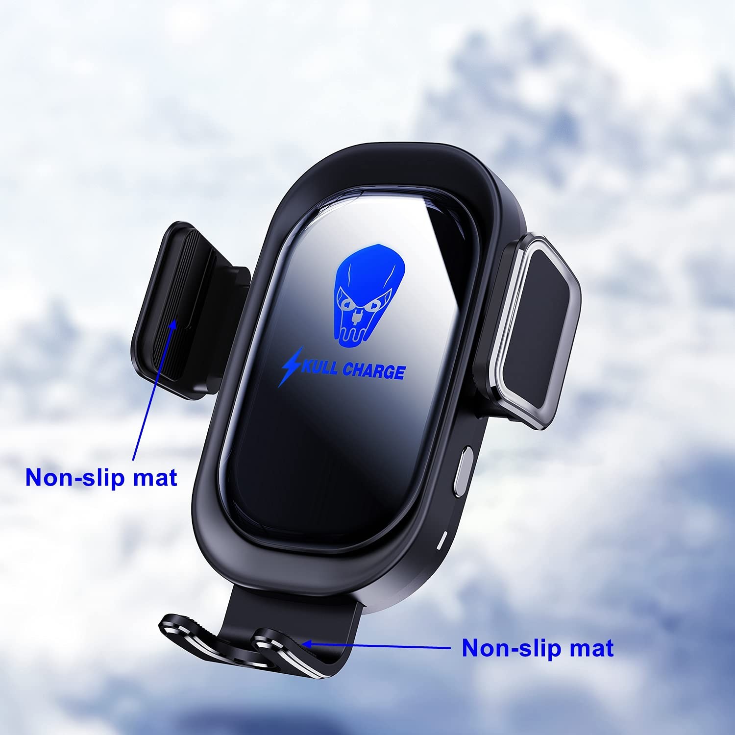 Wireless Car Charger, Qi 15W Fast Charging, Car Phone Holder Mount, Vent Dashboard Car Mount, Long Arm Hands Free Cell Phone Holder [Skull Atmosphere Light] Our product design is more high-end and elegant, made with best ABS material shell and quality mirror panel. When power is on, the LED logo light will light up. There are four colors can be choosed: Blue, Red, Green and White. The skull light can be used as atmosphere lights in the car. It looks very cool. This is an universal cell phone holder for car. Compatible with iPhone 15/ 15 Plus / 15 Pro/ 15 Pro Max/ 14/ 14 Plus/ 14 Pro/ 14 Pro Max/ 13/ 13 Pro/ 13 Mini/ 13 Pro Max/ 12/ 12 Pro/ 12 Mini/ 12Pro Max/ SE 2/ 11/ 11 Pro/ 11 Pro Max/ XS Max/ XS/ XR/ X, Galaxy S23/ S23+/ S23 Ultra/ S22/ S22+/ S22 Ultra/ S21/ S21+/ S21 Ultra/ S20/ S20+/ S20 Ultra 5G/ Note 20/ Note 20 Ultra/ S10, and all Qi-Enabled phones. It is wireless car sensing charger. Qi 15w fast charging. It is automatic opening and clamping design. Place the phone inside the holder, the clamps will automatically close, lock the phone tightly. Touch on the release buttons, the clamps will automatically open. It provides anti-overheating protection. When the temperature too heat, it will stop automatically charging. We provide a variety of installation methods. It can be installed at the air vent using a vent clip, or it can be firmly installed on the windshield, dashboard, or table through a powerful suction cup. 360-degree rotation in all directions, better viewing effect and more convenient to use. Suitable for most cars, pickup trucks, trucks, etc. Of course, you can also use it in other places, such as installed on the desktop in your home or office. It can be installed on any flat surface. Packing list:1 x Qi Wireless Car Charger, 1 x Suction Cup Mount,1 x Air Vent Clip, 1 x Type C Cable, 1 x User Manual. We provide 12-month worry-free guarantee and friendly customer service.