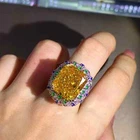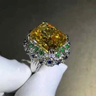 6 Carat Cushion Cut Vivid Yellow Moissanite Triple Halo 18K Gold Ring
