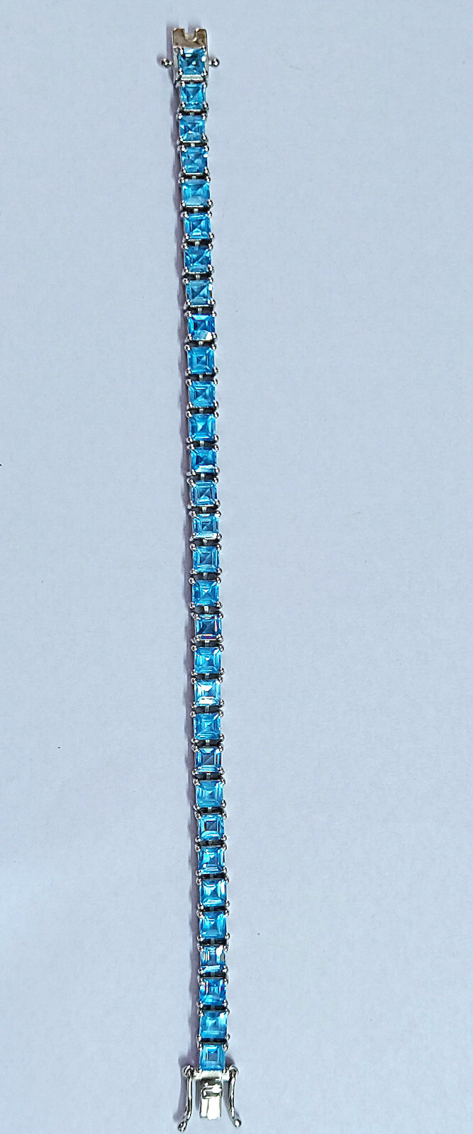 15ct Square Cut Blue Topaz Tennis Bracelet in 925 Sterling Silver for Women
