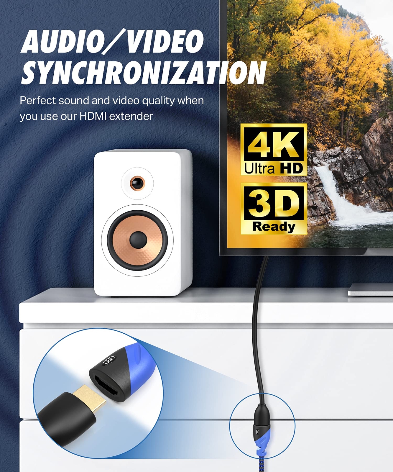 This HDMI extender is a game-changer for setting up my home theater! The 15-foot length gives me plenty of flexibility to position my streaming stick and gaming console perfectly. It delivers crystal-clear 4K video and audio without any lag or signal loss. I love that it works seamlessly with all my devices like the Fire Stick, PS4, and Apple TV. The sturdy connectors fit snugly and haven’t loosened over time. For the price, the quality is outstanding—no more struggling with short cables or messy setups behind the TV. Highly recommend for anyone needing extra reach!