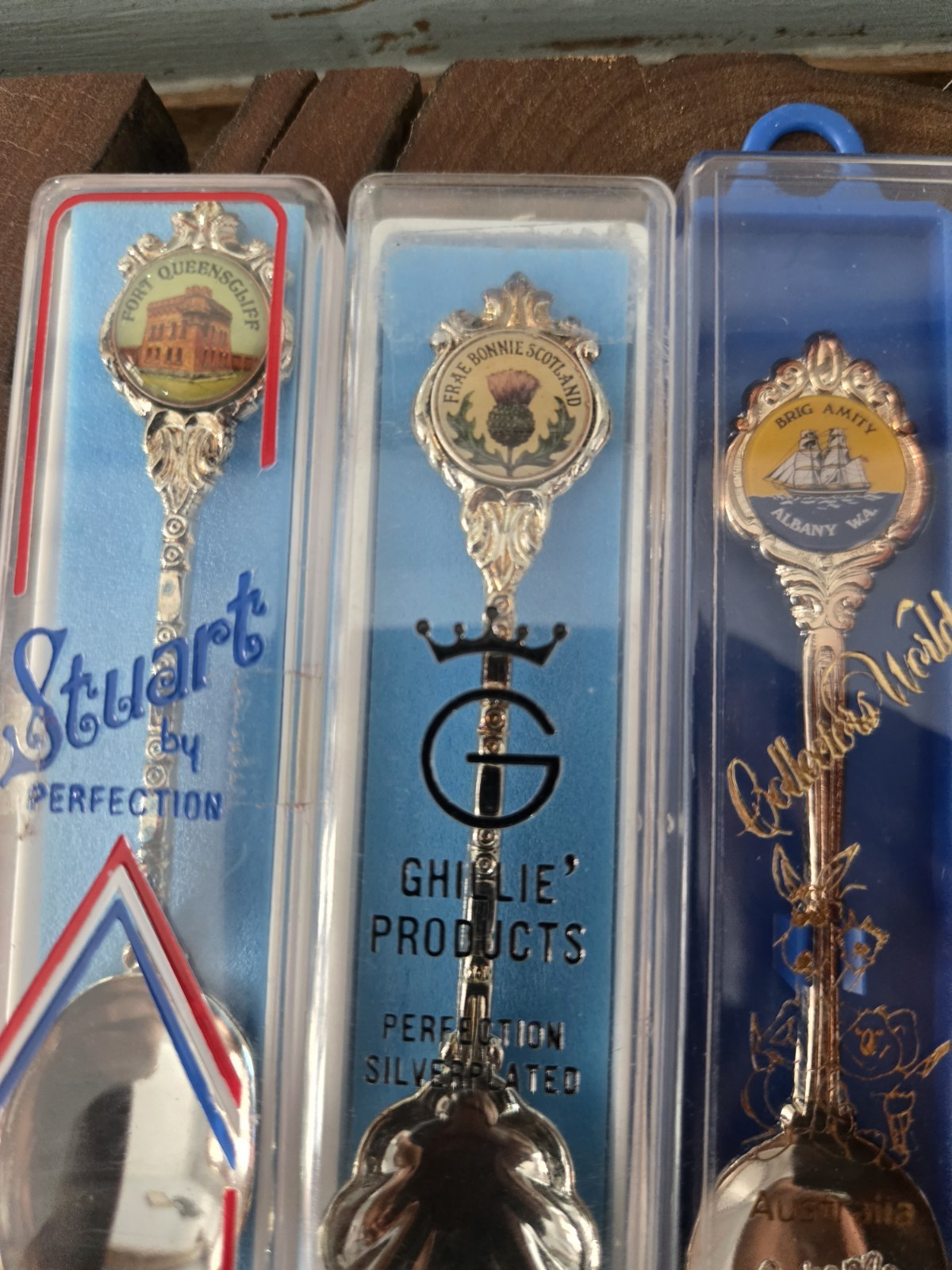 Delve into a bygone era with this exclusive collection of Australian Souvenir Decorative Spoons. Comprising a set of 15, these collectables are a treasure trove of vintage and retro style, crafted from high-quality metal and silver, boasting an elegant silver finish that has withstood the test of time. Each spoon is a unique piece, originating from various renowned brands such as Stuart, MDS, Princess, Ghille Products, Collector's Worlds Aus, Sun, and themed by Landa, Cameo by Perfection. These spoons do not bear a specific maker's mark but are a testament to the craftsmanship of Australian artisans, reflecting the rich cultural tapestry of the country. This rare set is a must-have for any collector of antiques or Spoons