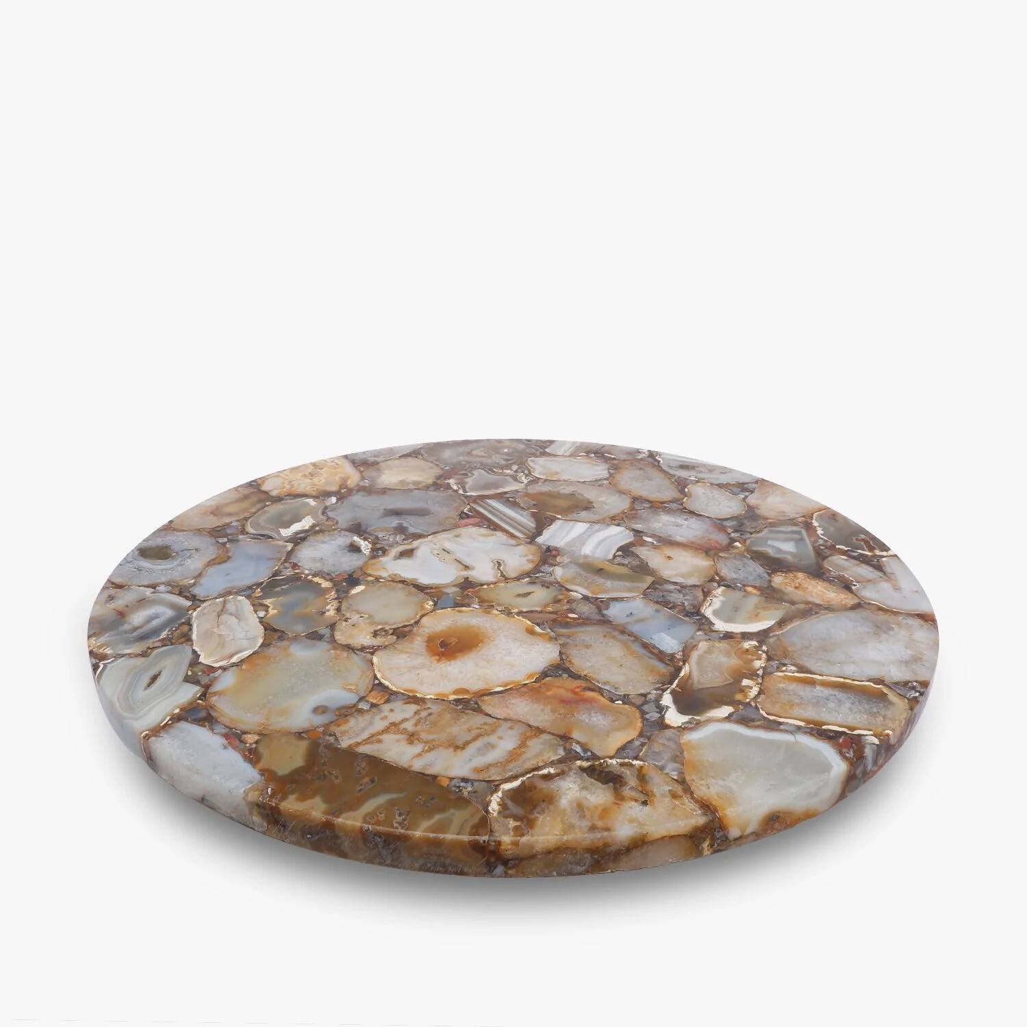 Welcome To Stone-Craft- Creations Shop Description Very unique Art by Indian Artist ,Coffee/Side Table top Used Material: Natural Agate Stones Arts Size: 15"x15" Inches Color: As Photo Shape: Round Pattern: Handmade Room: Bedroom, Dining Room, Hallway, Home Office/Study, Kid’s Bedroom, Kitchen, Laundry/Utility Room, Living Room,Patio, Playroom Packaging: Wood & Foam Export Packing Shipping: Air Can Be customize ,Please Message us your desired Size 1. It can be used as a Dining Table, Guest table, coffee table, center table top in show room as well as a gift for your loved ones. 2. The table top is made in Agra India & fully handmade. 3. The top will be delivered by FedEx or DHL free of cost door to door. 4. If there is any local tax,custom duties or Vat will be paid by the buyer at the destination. 5. The parcel is dispatch with proper packing & fully insured covering all kind of risk. 6. To maintain the table top is simple soap & water & dry cotton cloth. 7. If You Are Looking Something Customize, Let Us Know We Will Make For You As Per Your Design, Size & Shape. 8.Table top does not includes any wooden, marble stand or base if you like to buy marble or wooden base or stand that will be charged extra. Marble Agate Table Tops We are Manufacturer & Exporter of marble agate table tops. These marble agate table tops have different shapes like Round Table top, Octagonal Table Tops, Rectangle / Dining table tops, Square Table tops, Chess Table tops, Taj Mahal Table tops, Custom Designs Table tops also make marble Table top Base and Stand. Then we can be used as dining tables, coffee tables, Center tables, conference tables, chess boards, reading tables, bar tables , Garden table, side and corner tables or any other use as per the indoor and outdoor decor. They can also be placed outdoors in the garden, as marble is stain free, offers great resistance to the forces of nature, and can withstand heavy temperatures. We also meet customized requirement and offer our marble table tops at industry leading prices. About Agate Stone- Agate is a rock consisting primarily of cryptocrystalline silica, chiefly chalcedony, alternating with microgranular quartz. It is characterized by its fineness of grain and variety of color. Although agates may be found in various kinds of host rock, they are classically associated with volcanic rocks and can be common in certain metamorphic rocks. Ancient use of agate stone Agate is one of the most common materials used in the art of hardstone carving, and has been recovered at a number of ancient sites, indicating its widespread use in the ancient world; for example, archaeological recovery at the Knossos site on Crete illustrates its role in Bronze Age Minoan culture Types Of Agate 1. Fortification Agate This is the most common and distinctive type of agate. In these agates, bands crystallized into concentric layers that more or less follow the shape of the cavity. The banding resembles an aerial view of a fort 2. Water-Line Agate (also called water-level or onyx) During its formation, silica-rich solution either entered the cavity slowly laying one band at a time, excess water drained out leaving a small amount of silica to settle out into separate bands, or the vesicle filled under low pressure. In any case, the silica crystallization in water-level agates is controlled by gravity in one orientation, forming a stack up of parallel bands. 3. Shadow Agate Some agates exhibit a shadow effect in which there is what appears to be movement across the agate layers when the specimen is rocked back and forth (or your orientation to the specimen moves). This optical effect only occurs when there are alternating translucent and opaque bands. It is caused when light goes into the agate, but is not reflected out. 4. Tube Agate Tube Agate During the formation of some agates, parallel projections of tiny hair-thin mineral rods grow first within the silica gel, around which later the chalcedony agate micro-crystals form. In some cases the inclusions remain, but sometimes they weather away leaving hollow tubes that subsequently fill in with silica. 5. Eye Agates This mysterious agate characteristic is believed to be formed when most of the silica gel drains from the cavity, leaving only a droplet that “beads up” on the inside wall of the cavity. This droplet crystallizes into solid chalcedony “eyes”. In some cases, crystal growth will continue from this droplet in a manner similar to the formation of stalactites in caves. Later, the pocket fills in with the usual deposition of chalcedony microcrystals. 6. Plume Agate These agates initially had formations on their outside layer that formed prior to the deposition of chalcedony bands. They are filament growths of mineral inclusions that resemble ferns or feathers. 7. Geode Agate Geode Agate In some cases the supply of silica-rich water runs out before the entire cavity fills in. When there is a hollow center within a crystalline outer fill, the specimen is considered a geode. Not all geodes have agate banding, but many do. Also, the inner layers can form into several different types of silica mineral crystals and may even have other types of mineral crystals. 8. Moss Agate Moss Agate Moss agates have clusters of mineral inclusions that resemble plants, trees, or landscapes. Most moss agate inclusions are comprised of iron or manganese oxide. In some cases, the inclusions inhibit chalcedony banding allowing the mineral clusters free reign to grow within the silica gel. 9. Seam Agate Seam agates for in cracks within host rock, rather than in rounder pockets. The bands form in parallel rows that follow and fill in the crack or seam.