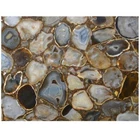 Welcome To Stone-Craft- Creations Shop Description Very unique Art by Indian Artist ,Coffee/Side Table top Used Material: Natural Agate Stones Arts Size: 15"x 15" Inches Stand Size: 16" Inches tall Color: As Photo Shape: Square Pattern: Handmade Room: Bedroom, Dining Room, Hallway, Home Office/Study, Kid’s Bedroom, Kitchen, Laundry/Utility Room, Living Room,Patio, Playroom Packaging: Wood & Foam Export Packing Shipping: Air Can Be customize ,Please Message us your desired Size 1. It can be used as a Dining Table, Guest table, coffee table, center table top in show room as well as a gift for your loved ones. 2. The table top is made in Agra India & fully handmade. 3. The top will be delivered by FedEx or DHL free of cost door to door. 4. If there is any local tax,custom duties or Vat will be paid by the buyer at the destination. 5. The parcel is dispatch with proper packing & fully insured covering all kind of risk. 6. To maintain the table top is simple soap & water & dry cotton cloth. 7. If You Are Looking Something Customize, Let Us Know We Will Make For You As Per Your Design, Size & Shape. Marble Agate Table Tops We are Manufacturer & Exporter of marble agate table tops. These marble agate table tops have different shapes like Round Table top, Octagonal Table Tops, Rectangle / Dining table tops, Square Table tops, Chess Table tops, Taj Mahal Table tops, Custom Designs Table tops also make marble Table top Base and Stand. Then we can be used as dining tables, coffee tables, Center tables, conference tables, chess boards, reading tables, bar tables , Garden table, side and corner tables or any other use as per the indoor and outdoor decor. They can also be placed outdoors in the garden, as marble is stain free, offers great resistance to the forces of nature, and can withstand heavy temperatures. We also meet customized requirement and offer our marble table tops at industry leading prices. About Agate Stone- Agate is a rock consisting primarily of cryptocrystalline silica, chiefly chalcedony, alternating with microgranular quartz. It is characterized by its fineness of grain and variety of color. Although agates may be found in various kinds of host rock, they are classically associated with volcanic rocks and can be common in certain metamorphic rocks. Ancient use of agate stone Agate is one of the most common materials used in the art of hardstone carving, and has been recovered at a number of ancient sites, indicating its widespread use in the ancient world; for example, archaeological recovery at the Knossos site on Crete illustrates its role in Bronze Age Minoan culture Types Of Agate 1. Fortification Agate This is the most common and distinctive type of agate. In these agates, bands crystallized into concentric layers that more or less follow the shape of the cavity. The banding resembles an aerial view of a fort 2. Water-Line Agate (also called water-level or onyx) During its formation, silica-rich solution either entered the cavity slowly laying one band at a time, excess water drained out leaving a small amount of silica to settle out into separate bands, or the vesicle filled under low pressure. In any case, the silica crystallization in water-level agates is controlled by gravity in one orientation, forming a stack up of parallel bands. 3. Shadow Agate Some agates exhibit a shadow effect in which there is what appears to be movement across the agate layers when the specimen is rocked back and forth (or your orientation to the specimen moves). This optical effect only occurs when there are alternating translucent and opaque bands. It is caused when light goes into the agate, but is not reflected out. 4. Tube Agate Tube Agate During the formation of some agates, parallel projections of tiny hair-thin mineral rods grow first within the silica gel, around which later the chalcedony agate micro-crystals form. In some cases the inclusions remain, but sometimes they weather away leaving hollow tubes that subsequently fill in with silica. 5. Eye Agates This mysterious agate characteristic is believed to be formed when most of the silica gel drains from the cavity, leaving only a droplet that “beads up” on the inside wall of the cavity. This droplet crystallizes into solid chalcedony “eyes”. In some cases, crystal growth will continue from this droplet in a manner similar to the formation of stalactites in caves. Later, the pocket fills in with the usual deposition of chalcedony microcrystals. 6. Plume Agate These agates initially had formations on their outside layer that formed prior to the deposition of chalcedony bands. They are filament growths of mineral inclusions that resemble ferns or feathers. 7. Geode Agate Geode Agate In some cases the supply of silica-rich water runs out before the entire cavity fills in. When there is a hollow center within a crystalline outer fill, the specimen is considered a geode. Not all geodes have agate banding, but many do. Also, the inner layers can form into several different types of silica mineral crystals and may even have other types of mineral crystals. 8. Moss Agate Moss Agate Moss agates have clusters of mineral inclusions that resemble plants, trees, or landscapes. Most moss agate inclusions are comprised of iron or manganese oxide. In some cases, the inclusions inhibit chalcedony banding allowing the mineral clusters free reign to grow within the silica gel. 9. Seam Agate Seam agates for in cracks within host rock, rather than in rounder pockets. The bands form in parallel rows that follow and fill in the crack or seam.