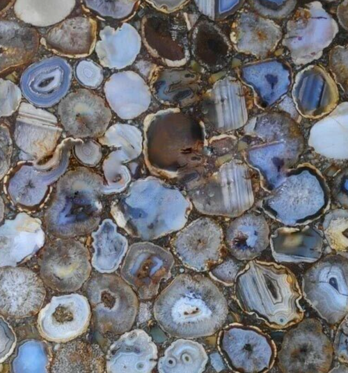 Welcome To Stone-Craft- Creations Shop Description Very unique Art by Indian Artist ,Coffee/Side Table top Used Material: Natural Stones Arts Size: 15"x 15" Inches Color: As Photo Shape: Square Pattern: Handmade Room: Bedroom, Dining Room, Hallway, Home Office/Study, Kid’s Bedroom, Kitchen, Laundry/Utility Room, Living Room,Patio, Playroom Packaging: Wood & Foam Export Packing Shipping: Air Can Be customize ,Please Message us your desired Size 1. It can be used as a Dining Table, Guest table, coffee table, center table top in show room as well as a gift for your loved ones. 2. The table top is made in Agra India & fully handmade. 3. The top will be delivered by FedEx or DHL free of cost door to door. 4. If there is any local tax,custom duties or Vat will be paid by the buyer at the destination. 5. The parcel is dispatch with proper packing & fully insured covering all kind of risk. 6. To maintain the table top is simple soap & water & dry cotton cloth. 7. If You Are Looking Something Customize, Let Us Know We Will Make For You As Per Your Design, Size & Shape. 8.Table top does not includes any wooden, marble stand or base if you like to buy marble or wooden base or stand that will be charged extra. Marble Agate Table Tops We are Manufacturer & Exporter of marble agate table tops. These marble agate table tops have different shapes like Round Table top, Octagonal Table Tops, Rectangle / Dining table tops, Square Table tops, Chess Table tops, Taj Mahal Table tops, Custom Designs Table tops also make marble Table top Base and Stand. Then we can be used as dining tables, coffee tables, Center tables, conference tables, chess boards, reading tables, bar tables , Garden table, side and corner tables or any other use as per the indoor and outdoor decor. They can also be placed outdoors in the garden, as marble is stain free, offers great resistance to the forces of nature, and can withstand heavy temperatures. We also meet customized requirement and offer our marble table tops at industry leading prices. About Agate Stone- Agate is a rock consisting primarily of cryptocrystalline silica, chiefly chalcedony, alternating with microgranular quartz. It is characterized by its fineness of grain and variety of color. Although agates may be found in various kinds of host rock, they are classically associated with volcanic rocks and can be common in certain metamorphic rocks. Ancient use of agate stone Agate is one of the most common materials used in the art of hardstone carving, and has been recovered at a number of ancient sites, indicating its widespread use in the ancient world; for example, archaeological recovery at the Knossos site on Crete illustrates its role in Bronze Age Minoan culture Types Of Agate 1. Fortification Agate This is the most common and distinctive type of agate. In these agates, bands crystallized into concentric layers that more or less follow the shape of the cavity. The banding resembles an aerial view of a fort 2. Water-Line Agate (also called water-level or onyx) During its formation, silica-rich solution either entered the cavity slowly laying one band at a time, excess water drained out leaving a small amount of silica to settle out into separate bands, or the vesicle filled under low pressure. In any case, the silica crystallization in water-level agates is controlled by gravity in one orientation, forming a stack up of parallel bands. 3. Shadow Agate Some agates exhibit a shadow effect in which there is what appears to be movement across the agate layers when the specimen is rocked back and forth (or your orientation to the specimen moves). This optical effect only occurs when there are alternating translucent and opaque bands. It is caused when light goes into the agate, but is not reflected out. 4. Tube Agate Tube Agate During the formation of some agates, parallel projections of tiny hair-thin mineral rods grow first within the silica gel, around which later the chalcedony agate micro-crystals form. In some cases the inclusions remain, but sometimes they weather away leaving hollow tubes that subsequently fill in with silica. 5. Eye Agates This mysterious agate characteristic is believed to be formed when most of the silica gel drains from the cavity, leaving only a droplet that “beads up” on the inside wall of the cavity. This droplet crystallizes into solid chalcedony “eyes”. In some cases, crystal growth will continue from this droplet in a manner similar to the formation of stalactites in caves. Later, the pocket fills in with the usual deposition of chalcedony microcrystals. 6. Plume Agate These agates initially had formations on their outside layer that formed prior to the deposition of chalcedony bands. They are filament growths of mineral inclusions that resemble ferns or feathers. 7. Geode Agate Geode Agate In some cases the supply of silica-rich water runs out before the entire cavity fills in. When there is a hollow center within a crystalline outer fill, the specimen is considered a geode. Not all geodes have agate banding, but many do. Also, the inner layers can form into several different types of silica mineral crystals and may even have other types of mineral crystals. 8. Moss Agate Moss Agate Moss agates have clusters of mineral inclusions that resemble plants, trees, or landscapes. Most moss agate inclusions are comprised of iron or manganese oxide. In some cases, the inclusions inhibit chalcedony banding allowing the mineral clusters free reign to grow within the silica gel. 9. Seam Agate Seam agates for in cracks within host rock, rather than in rounder pockets. The bands form in parallel rows that follow and fill in the crack or seam.