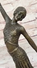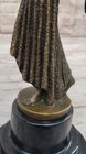 Condition : This sculpture is in perfect condition Bronze Dimensions with Marble Base: Height 15" X Width 8" Marble Dimensions: Diameter 5" Height without base:12" Weight:8 LBS Inventory:64-B7154246 In a mesmerizing display of grace and artistry, this bronze sculpture by Chiparus captures the spirit of a Gypsy dancer performing for an entranced audience. Positioned at the center stage, the Gypsy dancer exhibits remarkable flexibility and agility in her movements. Her body moves with fluidity as she stretches her arms elegantlymdash;one reaching towards the sky, while the other extends behind her. The dancer arches her back, tilts her head to the side, and casts a gaze down to her feet, creating a captivating and expressive pose. The intricate details of her attire add to the allure of the sculpture. A long flowing skirt, a beaded floral bodice, and a neatly wrapped silk scarf around her head contribute to the authenticity and charm of the piece. Crafted with meticulous precision, this 100% bronze sculpture is a masterpiece created using the "Lost Wax Method." Mounted on a marble base, the sculpture stands as a testament to the artist's skill and the timeless beauty of the performing arts. It bears the signature of the renowned artist D.H. Chiparus, further emphasizing its quality and artistic pedigree. Handmadenbsp;BRONZE SCULPTURE AFTER CHIPARUS PAINTED ART FEMALE DRESS SIGNED FIGURE Video will open in a new window Using the eBay App? Paste link into a browser window: [isdntekvideo]