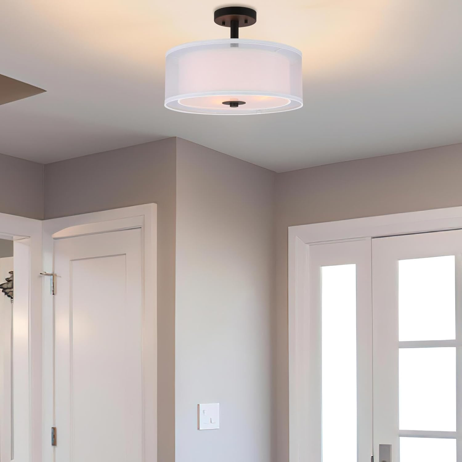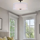 Store New Arrivals Add to Favorite View Feedback Contact Semi Flush Mount Ceiling Light, 3 Light Drum Semi Flush Light, 16" Close to Ceiling Light with Fabric Shade in Dark Bronze for Living Room & Bedroom XB-SF1194-DB Description Item model number XB-SF1194-DB Light Source Type Incandescent / CFL / LED Bulb Style Classic Number of Items 1 Power Source Hardwired Fixture Type Non Removable Number of Light Sources 3 Country of Origin China Embellishment Lighting Theme Home Batteries Included? No Lighting Method Horizon Specification Met ETL Controller Type Push button Unit Count 1 Count Room Type Bedroom, Kitchen, Living Room, Dining Room, Entry, Hallway, Home Assembly Required Yes Product Dimensions 16"L x 16"W x 12"H Material Fabric Shade, Glass Diffuser, Metal Installation Type Semi Flush Mount Is Discontinued By Manufacturer No Specific Uses For Product Home Indoor/Outdoor Usage Indoor Brightness 1800 lumen Control Method App Light Color warm white Water Resistance Level Not Water Resistant Batteries Required? No Warranty Type Limited 1-Year Item Weight 4.4 pounds Light fixture form Close to Ceiling Special Features Drum Ceiling Light with Glass Diffuser Special Feature Drum Ceiling Light with Glass Diffuser Part Number XB-SF1194-DB Shade Color White & Transparent Mounting Type Ceiling Mount Color Dark Bronze Finish Type Powder Coated Wattage 60 watts Bulb Base E26 Medium Shape Drum Voltage 120 Volts Plug Format A- US style Recommended Uses For Product Indoor Shade Material Fabric Shade Finish types Powder Coated Included Components Shade Included Switch Type Push Button FEATURE: This Semi flush mount ceiling light in dark bronze with double fabric shade and frosted glass diffuser.The drum ceiling light is the perfect blend of classic exquisiteness and modern boldness.The drum-shaped fixture has a dual outer and inner shade that adds a delightful dimensional aspect and livens up your ceiling, provide a balanced warming lighting to your space. MODERN DESIGN: The elegant 3 Light drum semi flush light is perfect for kitchen, bedroom, living room, dining room, foyer or any living areas, of which will lend elegance to your space while surrounding it with relaxing ambient light EASY INSTALLATION: This close to ceiling light is an ideal for low or mid-height ceilings. Come with all the mounting hardware for quick and simple installation. MEDIUM BASE SOCKET: Suggest to takes three maximum 60 watt Medium base bulbs (incandescent, CFL or LED compatible). Bulbs not included. ETL LISTED. For any question on any accessory, just feel free to . Product Description Drum semi flush ceiling light featuring a smooth dark bronze finish and white fabric shade, frosted glass diffuser. Its double fabric shade creates a comfortable and brings all the modern elements. This elegant drum ceiling fixture is perfect for Kitchen, Bedroom, Living room, dining room, foyer or any living areas, of which will lend elegance to your space while surrounding it with relaxing ambient light. Dark bronzed semi flush light is is an ideal for low or mid-height ceilings. The drum-shaped fixture has a dual outer and inner shade that adds a delightful dimensional aspect. Product Specification Dimension: W:16" x H:12" Finish: Dark Bronze Shade Material: Double Fabric Shade + Frosted Glass Diffuser Shade Dimensions: (Outer) W:16" x H: 6" (Inner) W:13ʺ x H: 5ʺ Socket: E26 Socket 3x60W (Bulb not Included) Compatible with Variety of Bulbs This semi flush mount is suggest to use “A” Type Max. 3x60W bulbs for medium base (E26 socket) (incandescent bulb or equivalent CFL / LED bulbs) The fixture is dimmable when using the dimmable bulb with compatible dimmer switch. Bulb not Included Semi Flush Ceiling Light Collection Add to Cart Add to Cart Add to