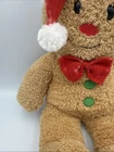 The BAB Gingerbread Cookie Boy Plush Santa Hat Doll is a 16" Christmas toy made by Build-A-Bear Workshop in 2011. This handmade plush doll features a gingerbread boy design, perfect for the holiday season. With a brown color and holiday clothing style, this original and non-vintage item is suitable for children aged 3 and up. The adorable doll is part of the Holiday Collection and comes with a Santa hat, making it a festive addition to any Christmas toy collection.