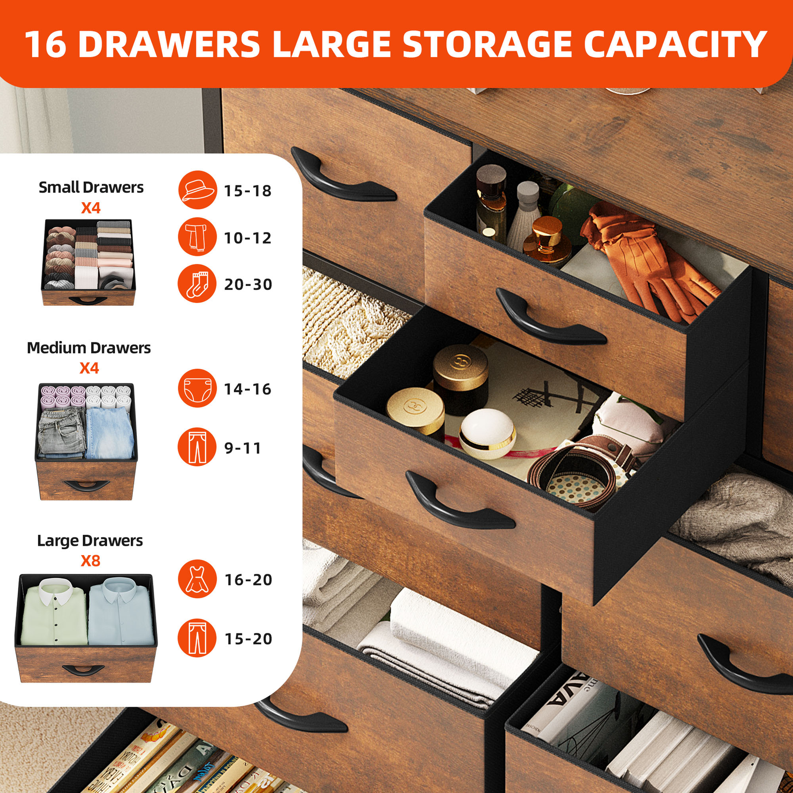 Product Description NOTE: Professional Installation would be Highly Recommended. Specifications: 1. Color: Rustic Brown 2. Material: Medium-density fiberboard (MDF), Fabric, Steel and Plastic 3. Frame Material: Metal 4. Product Dimensions: 37.4"L x 11.8"W x 57.1"H 5. Big Drawers Dimensions: 17.5"L x 10.8"W x 8.6"H 6. Medium Drawers Dimensions: 11.4"L x 10.8"W x 8.7"H 7. Small Drawers Dimensions: 11.4"L x 10.8"W x 4.3"H 8. Room Type: Bedroom and Living Room 9. Main Features: Premium Fabric, Waterproof, Abrasion Resistance, Adjustable Legs Package Included: 1. Dresser Storage Chest 2. Assembling Hardware Kits 3. Instruction Manual Book Product Details Durable Build: This piece is constructed with a sturdy metal frame and a high-quality MDF wooden surface. The dual X-shaped support beams at the back enhance its durability, ensuring long-lasting use. Adjustable plastic legs provide stability on different floor surfaces, making it adaptable to various environments. Safe and Easy Assembly: Measuring 37.4" L x 11.8" W x 57.1" H, this unit is designed for effortless assembly, with clear instructions provided. To bolster safety precautions, it offers instructions for anchoring the dresser to the wall, minimizing the risk of tipping and ensuring a sturdy and secure setup. Varied Drawer Dimensions: The piece is equipped with a mix of drawer sizes: 4 small, 4 medium, and 8 large. This variety makes it ideal for organizing an assortment of items, from undergarments and socks to accessories, clothing, and bedding. Functional Configuration: The generous tabletop offers ample space for showcasing lamps or decorative plants. Elegant pull handles ensure a comfortable grip and smooth operation. Made from durable, low-maintenance non-woven fabric, this piece is designed for long-lasting quality and ease of care. Shipping 1. The shipping rates listed are only for residential or commercial destinations in the continental 48 states of USA. All international sales will go through eBay International Shipping Program. 2. We don't ship to Hawaii, Alaska, Puerto Rico, APO/FPO/PO Boxes. 3. Please verify the correct shipping address in your PayPal account before making the payment. We only dispatch the item to the address that is sent to us at the time of checkout. 4. The major delivery we use are USPS, UPS, FedEx & LTL. 5. Normally the item will be dipatched within 1 business day if payment is cleared before 12pm PST. 6. We don't provide local pick-up service. Payment 1. We accept PayPal and credit card. 2. Ship to the confirmed Paypal shipping address that is provided with the payment. Return 1. 30 days Money Back Guarantee. 2. Please contact our customer service to receive a RMA form first if want to return the item. 3. All returned items MUST in new condition with the original package. On Sep 18, 2024 at 07:55:47 PDT, seller added the following information: On Feb 24, 2025 at 23:25:19 PST, seller added the following information: On Jun 5, 2025 at 05:42:19 PDT, seller added the following information:
