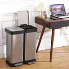 Quiet and Gentle Closure: The dual trash and recycling bins are equipped with a soft-close lid, ensuring a silent and peaceful environment. The internal hinge design prevents noisy lid slamming and reduces disturbances, enhancing the overall user experience with its quiet operation. Improved Kitchen Hygiene: Constructed from stainless steel, the recycling bin is resistant to fingerprints and dirt, helping to maintain a cleaner and more hygienic kitchen environment. The bottom seals further prevent spills and leaks, contributing to a cleaner and odor-free kitchen space, promoting a healthy and pleasant atmosphere. Convenient Hands-Free Operation: Each compartment of the garbage can boasts a sturdy steel pedal, allowing for convenient and hygienic hands-free operation. This feature proves especially useful in the kitchen when hands are full or dirty, enabling easy waste disposal without the need to touch the trash bins, adding convenience to daily waste management tasks. Space-Saving Design: Despite offering dual compartment functionality, the dual trash and recycling bins feature a compact design that conserves space in small kitchens or homes with limited space. The separate compartments for waste disposal and recycling make them a practical choice for households of all sizes, maximizing efficiency and convenience. Dual Compartment Recycling: The garbage can with lid is thoughtfully designed with two separate compartments for easy waste sorting and recycling. This dual compartment feature allows for efficient waste management and encourages recycling practices in the home, making it easier to separate and dispose of recyclable materials responsibly.