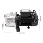 Specifications Material: Stainless Steel, Silicone Process: Painting and Polishing Motor: Pure Copper Motor Mounting Type: Floor Standing Power Source: Corded Electric IP Level: IP44 Waterproof Lever: IP68 Capacitance: 35μF Max Temperature: 55°C/131°F Voltage: 110V, 60Hz Input Current: 7.0A Power: 1.2KW(1.6hp) Rotating Speed: 3420rpm Water Pump Inlet: 2.54cm/1in Water Pump Outlet: 2.54cm/1in Max Sprinkler Volume: 3.4m³/h/898.18GPH Noise: 0-30db Maximum Lift Height: 48m/157.48ft Maximum Pressure: 4.8bar Maximum Suction: 8-10m/26.2-32.8ft Maximum Flow Rate: 4. 8m³/h/1268.03GPH Power Cord Length: 1m/3.28ft Gross Weight: 8.7kg/19.18lbs Product Size: 38*20*22cm/14.96*7.87*8.66in Package Included 1*Water Pump 1*Multilingual Manual 1*Sealing Tape 1.6 HP Shallow Well Jet Pump Homes Supply Water Well Jet Pump w/ Pressure Switch 1.6HP Portable Shallow Well Pump, Draining Irrigation Pump for Lawn, Water Pump Specifications Material: Stainless Steel, Silicone Color: Black, Silver Process: Painting and Polishing Motor: Pure Copper Motor Assembly Required: Yes Mounting Type: Floor Standing Power Source: Corded Electric Plug Type: US Standard IP Level: IP44 Waterproof Lever: IP68 Capacitance: 35μF Max Temperature: 55°C/131°F Voltage: 110V, 60Hz Input Current: 7.0A Power: 1.2KW(1.6hp) Rotating Speed: 3420rpm Water Pump Inlet: 2.54cm/1in Water Pump Outlet: 2.54cm/1in Max Sprinkler Volume : 3.4m³/h/898.18GPH Noise: 0-30db Maximum Lift Height: 48m/ 157.48ft Maximum Pressure: 4.8bar Maximum Suction: 8-10m/26.2-32.8ft Maximum Flow Rate: 4. 8m³/h/1268.03GPH Power Cord Length: 1m/3.28ft Gross Weight: 8.7kg/19.18lbs Product Size: 38*20*22cm/14.96*7.87*8.66in Package Size: 46*30*26cm/18.11*11.81*10.24in Description If you are looking for efficient and simple irrigation methods, take a look at our water pump. Made of high-quality silicon and stainless steel with painting and polishing processes, this product provides quality assurance for your long-term use. Max 1.2kw power, 3420 rpm, and max.157.48ft lift make your work easier and more efficient. We believe it will be your assistant in agricultural production, breeding, or other work. Key Features Build to Last : The product is made of high-quality silicon and stainless steel, and adopts painting and polishing processes making it solid, and not prone to rust and corrosion, so it can remain beautiful and practical for a long time. High Efficiency: The 1.2KW pure copper motor, 3420rpm speed, 1268.03gal/h maximum flow rate, 26.2-32.8ft maximum suction, 4.8 bar maximum pressure, and tight bearing make your pumping and watering work faster and easier. Delivery Assistant: The maximum lift of the pump is 157.48ft, which allows you to irrigate farmland, fish ponds, and orchards for a long distance, saving the time and cost of manual transportation. Safety Guard: It has built-in thermal, IP68 waterproof level, overload protection, and is equipped with uniform heat dissipation holes and a fan, which can timely reduce the temperature during operation, and reduce potential safety hazards, thus extending the service life of the product. Good Sealing Performance: The product comes with a PTFE sealing tape, you can wrap it around the area that needs to be sealed to avoid water ingress or leakage, bringing you a better using experience. Low Noise: It runs very smoothly with little vibration and noise( 0-30db ), which can bring you a quiet working environment. Easy to Use: With a detailed instruction manual, you just need to follow the steps in the manual to pump, sprinkle, etc. Ideal Gift: Such a practical product is an ideal gift for family and friends who need garden watering and vegetable garden irrigation. Protective Package: To prevent damage to the product due to bumps in transit, we place air column bag and foam to protect the product as much as possible. Quality Service: We are honored that you have chosen our product. We have sufficient confidence in the quality of the product so that you can buy it confidently. But if you have any questions, you can contact our customer service, he will patiently answer and solve your problems . Details Standard Water Inlet and Outlet: The product adopts an NPT 1-inch large diameter water inlet and outlet, which can be matched with different types of water pipes and is very practical. Sealing Ring: The silicone sealing ring is used to avoid water leakage and reduce waste. Support Feet: They can better maintain the stability of the product and ensure smoother operation. Application It is suitable for sprinkler systems, irrigation, daily water delivery, and drawing water from shallow wells, ponds, lakes, rain barrels, tanks, and more. It can be used as a sprinkler pump, well pump, or booster pump and can pressurize your home for solar, washing machine, water heater, tap water, shower, etc. Package Included 1* Water Pump 1*Multilingual Manual 1*Sealing Tape Notes Adding water to the pump head until it is full helps to speed up the inlet flow rate. The inlet pipe(not included) shall not be excessively bent and the end pipe (not included)shall be completely submerged. Please note that it is only suitable for clean water. Please read the operating manual completely before use, and pay particular attention to the safety instructions included. Please discharge the waste water if not used frequently and please do not run the pump without water. Please do not wet the motor before first use, and fill the pump head with water to wet the impeller. Please perform a water test after the installation is complete to check for leaks and other conditions. Please make sure that the air inlet joint or pipe is completely sealed and air-tight, and that hose used for the water inlet pipe is not sucked and deflated. Check the coupling to see if the internal drive is damaged. Please allow the slight color difference caused by the shooting light and 1-3cm error due to manual measurement, and make sure you do not mind before you order. Payment Delivery