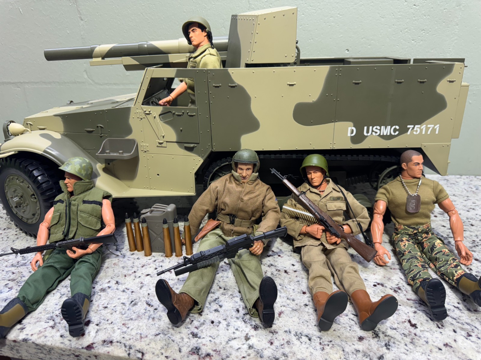 Vintage 1/6 Hasbro GI Joe WWII M3 Tank Destroyer with Driver includes 5 Hasbro GI JOE Action Figures with Accessories. Like new condition. Please contact us with any questions previous to purchase.