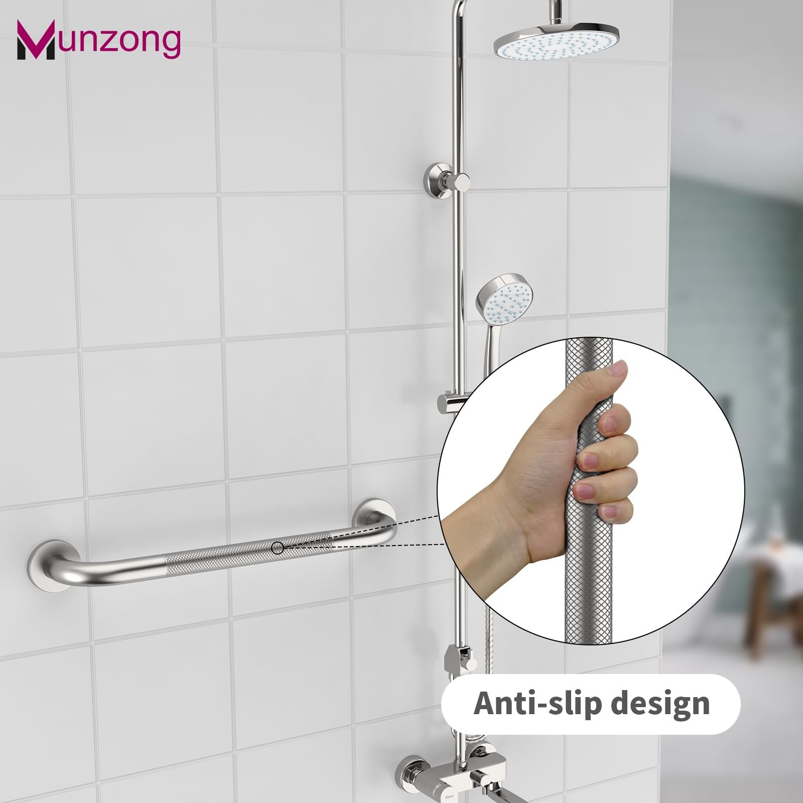 1 Pack 16 inch Concealed Screw In Non-slip Stainless Steel Shower Grab Bars with classic knurled surface design to bring safety and stability to your bathroom/garage/doorway. With only 2 screws required per side for a secure mount, the 3 hole flange gives you installation flexibility for your unique safety grab bar mounting needs. Measuring 16 inch in length, the 1 inch diameter grab bar is fully ADA compliant and rated for supporting up to 500 pounds. Accidents can occur, but be ready before they happen. Make bathroom safety a part of your home decor. Being safe is easier than you think. Easy Installation Enjoy greater peace of mind in the bathroom with 16-inch Anti Slip Shower Safety Handle. It provides a reliable handhold whether you're showering or using the toilet. wall grab bars for the elderly allow for easy installation at any angle and help ensure proper alignment. Durable, Reliable, Anti-slip, Rust Proof and Stylish Constructed from durable rustproof stainless steel, it features a corrosion-resistant knurled surface to ensure lasting performance. Stylish end covers conceal the mounting hardware for a clean seamless look. The Non slip knurled surfaces on the middle to coordinate beautifully with most bathroom finishes. Package: 1x 16 Inch Anti-Slip Stainless Steel Shower Grab Bar 1x Manual 1x Screws Bag(4cm in length) How to Install Wall Mounted Bathroom Safety Bar? Step 1: Locate wall studs where you want to install the shower safety handle; Step 2: Drill holes through the ceramic tiles or tub enclosure into the studs to start the screws; Step 3: A cover plate can be slide over the mounting plate with the holes; Each end has flat plate with 3 holes in each. Thus grab handle can be fastened with screws or bolts to a wall or a cabinet. Safety Grab Bar: shower grab bar, 16-inch (40 cm) length and 0.98-inch (2.5 cm) diameter for a comfortable, secure grip. Crafted from heavy-duty stainless steel with a knurled anti-slip surface, this Bathroom grab bar supports up to 500 lbs, providing reliable stability for seniors, disabled individuals, and pregnant users. Anti-Slip Grip & Durability: Engineered with knurled surface for superior wet-condition grip, this rust-resistant stainless steel grab bar maintains maximum safety reliability. The durable satin nickel surface is more suitable for high-humidity environments and is an ideal choice for anti-slip bathrooms, showers and bathtubs for the elderly. Easy Installation: Includes 7 silver screws, 7 expansion tubes, and 2 short screws for hassle-free mounting.The hidden screw holes allow discreet installation, and the Grab bar can be installed horizontally or vertically to adapt to any space. No professional tools needed ! Versatile Use: More than just a shower grab bar, this sturdy safety hand rails is perfect for multiple locations: install near toilets, bathtubs, kitchens, staircases, bedrooms, or laundry rooms. Its universal design blends seamlessly with any decor while providing essential support. High-quality: grab bars are rigorously tested to meet high safety standards. Whether used as shower grab bars for seniors or general safety hand rails throughout your home, this product delivers peace of mind with its robust construction and elegant satin nickel finish. 16 Inch bathroom grab bar 16 Inch shower grab bar 16 Inch grab bars for bathtubs and showers 16 Inch bathroom grab bars for shower 16 Inch shower grab bars brushed nickel