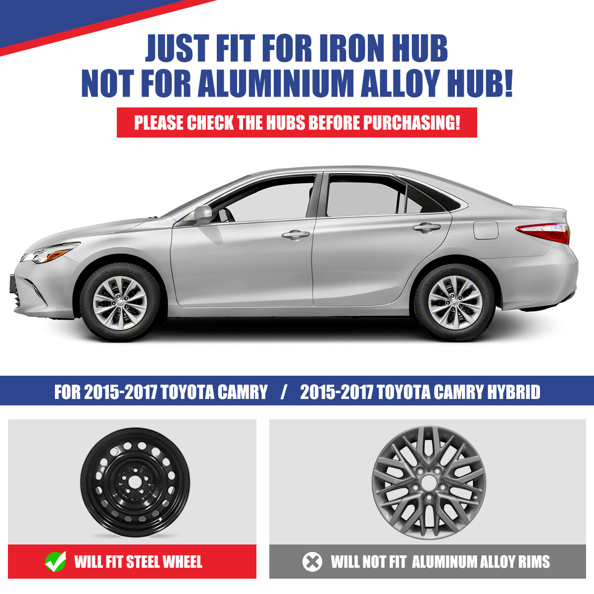 Head Lights Tail Lights Fog Lights Turn Signal Bumper Fender Flare Inner Fender Hubcaps Refrigerator Other Items for sale Head Lights Tail Lights Fog Lights Turn Signal Bumper Fender Flare Inner Fender Liners Portable Refrigerator Fitment: for 2015 2016 2017 Toyota Camry 16'' Hubcaps Wheel Rim Cover Description: This set of 4 wheel covers is perfectly designed to fit your 16 inch Tire Size 2015 2016 2017 Toyota Camry ...and easily installs over your existing factory steel wheels in minutes! These wheel covers are constructed from durable, automotive grade plastic and feature an attractive finish for a custom look. ---Before Purchase: Please make sure to check your tire/wheel size before purchase! To confirm wheel size, please refer to the last two digits after the "R" of the tire. Designed for steel wheels, not for alloy wheels.Not suitable for wheels with middle protrusions higher than the rim. Not suitable for iron rims with long lug nuts. ---Easy Installation: Align the grooves of the adjustable steel retaining ring with the grooves of the hubcap and align the hubcap with the tire valve before snapping it onto the wheel. ---Stylish Appearance: The rim covers are very stylish and modernized with a finish, easily transforming the appearance of your wheels and enhancing the overall aesthetics of your car. ---Protect Your Wheels: universal hubcap can protect the tire screws and make it waterproof and rustproof. The hubcaps are easy to clean and maintain, can be quickly wiped with a damp cloth to remove any dirt. ---Quality Service: The wheel cover kit is compatible with most steel wheels. NOTE: Our wheel hubcaps are not suitable for wheels fitted with dynamic balancing blocks. If you have any other questions, please contact us. Specifications: - 10 Spoke Style - Front and Rear - Size:16 Inch - Material:High Quality Hard and Durable ABS Plastic - Fitment is for factory 2015 2016 2017 Toyota Camry 16' steel wheels only Package: 1 set of Wheel Covers(4 x Wheel Covers) Payment Shipping Return About us Contact us Payment Appreciated for the prompt payment, Contact us if bid by mistake, system open unpaid item automatically. Payment must be complete within 3 days from the date you purchase or after the end of auction. Items unpaid within 3 days of the auction end will be forfeited. We reserve the right of cancel the order and re-selling the items. Shipping All shipment will ship by UPS or USPS . All items will be ship within 1 working days , and we will ship out all orders as soon as possible after payment verified, please allow up to 1-4 business days for delivery. CANADA & International customers please note: your government might charge a duty tax (brokerage fees). We do not responsible for any custom duty or import tax. Why Choose the US Stock? 1. Us Local Shipping, No Extra Customs Cost to the US. 2. Fast Delivery: 1-4 Working days Delivery. 3. Best After-Sales Service!!! Return The buyer is responsible for all return shipping including a result of customer error or defective item. 1) If you received an incorrect, damaged, defective, or item not as described, contact us for full refund or replacement on our cost. 2) If you want to return the item, please contact us within 60 days after package received. Return products must also be in its original condition: including box, packaging and all other accessories. About us We are the best auto parts, we have been pursuing excellence, continuous exploration as the slogan, let customer satisfaction is our purpose! We adhere to the United States local delivery, one year warranty! Welcome! Contact us How Should You Contact us? Please Read The Item Description And See if The item Fits Your Vehicle Exactly. If You Found Any questions, Feel Free to email us by "Ask a question" Our Office Hours Are Monday - Friday 8:00am - 5:00pm PST / 11:00am - 8:000pm ET, We Do Not Answer Any E-Mails On Weekend, And We Will Reply All E-Mails In The Order It Was Receive. All E-Mail Take Us Around 24 Hours To Respond To Any E-Mail. We Are Close During The Weekends And We Do Not Answer Any E-Mails During That Time.