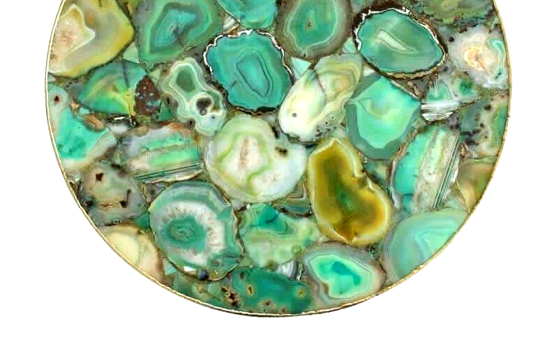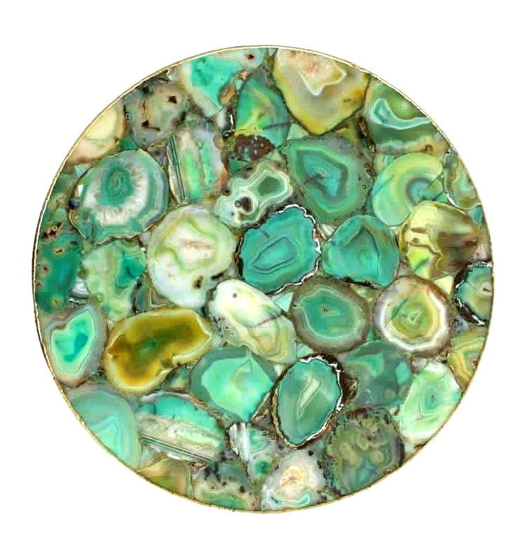 Welcome To Stone-Craft- Creations Shop Description Very unique Art by Indian Artist ,Coffee/Side Table top Used Material: Natural Agate Stones Arts Size: 16"x 16" Inches Color: As Photo Shape: Round Pattern: Handmade Room: Bedroom, Dining Room, Hallway, Home Office/Study, Kid’s Bedroom, Kitchen, Laundry/Utility Room, Living Room,Patio, Playroom Packaging: Wood & Foam Export Packing Shipping: Air Can Be customize ,Please Message us your desired Size 1. It can be used as a Dining Table, Guest table, coffee table, center table top in show room as well as a gift for your loved ones. 2. The table top is made in Agra India & fully handmade. 3. The top will be delivered by FedEx or DHL free of cost door to door. 4. If there is any local tax,custom duties or Vat will be paid by the buyer at the destination. 5. The parcel is dispatch with proper packing & fully insured covering all kind of risk. 6. To maintain the table top is simple soap & water & dry cotton cloth. 7. If You Are Looking Something Customize, Let Us Know We Will Make For You As Per Your Design, Size & Shape. 8.Table top does not includes any wooden, marble stand or base if you like to buy marble or wooden base or stand that will be charged extra. Marble Agate Table Tops We are Manufacturer & Exporter of marble agate table tops. These marble agate table tops have different shapes like Round Table top, Octagonal Table Tops, Rectangle / Dining table tops, Square Table tops, Chess Table tops, Taj Mahal Table tops, Custom Designs Table tops also make marble Table top Base and Stand. Then we can be used as dining tables, coffee tables, Center tables, conference tables, chess boards, reading tables, bar tables , Garden table, side and corner tables or any other use as per the indoor and outdoor decor. They can also be placed outdoors in the garden, as marble is stain free, offers great resistance to the forces of nature, and can withstand heavy temperatures. We also meet customized requirement and offer our marble table tops at industry leading prices. About Agate Stone- Agate is a rock consisting primarily of cryptocrystalline silica, chiefly chalcedony, alternating with microgranular quartz. It is characterized by its fineness of grain and variety of color. Although agates may be found in various kinds of host rock, they are classically associated with volcanic rocks and can be common in certain metamorphic rocks. Ancient use of agate stone Agate is one of the most common materials used in the art of hardstone carving, and has been recovered at a number of ancient sites, indicating its widespread use in the ancient world; for example, archaeological recovery at the Knossos site on Crete illustrates its role in Bronze Age Minoan culture Types Of Agate 1. Fortification Agate This is the most common and distinctive type of agate. In these agates, bands crystallized into concentric layers that more or less follow the shape of the cavity. The banding resembles an aerial view of a fort 2. Water-Line Agate (also called water-level or onyx) During its formation, silica-rich solution either entered the cavity slowly laying one band at a time, excess water drained out leaving a small amount of silica to settle out into separate bands, or the vesicle filled under low pressure. In any case, the silica crystallization in water-level agates is controlled by gravity in one orientation, forming a stack up of parallel bands. 3. Shadow Agate Some agates exhibit a shadow effect in which there is what appears to be movement across the agate layers when the specimen is rocked back and forth (or your orientation to the specimen moves). This optical effect only occurs when there are alternating translucent and opaque bands. It is caused when light goes into the agate, but is not reflected out. 4. Tube Agate Tube Agate During the formation of some agates, parallel projections of tiny hair-thin mineral rods grow first within the silica gel, around which later the chalcedony agate micro-crystals form. In some cases the inclusions remain, but sometimes they weather away leaving hollow tubes that subsequently fill in with silica. 5. Eye Agates This mysterious agate characteristic is believed to be formed when most of the silica gel drains from the cavity, leaving only a droplet that “beads up” on the inside wall of the cavity. This droplet crystallizes into solid chalcedony “eyes”. In some cases, crystal growth will continue from this droplet in a manner similar to the formation of stalactites in caves. Later, the pocket fills in with the usual deposition of chalcedony microcrystals. 6. Plume Agate These agates initially had formations on their outside layer that formed prior to the deposition of chalcedony bands. They are filament growths of mineral inclusions that resemble ferns or feathers. 7. Geode Agate Geode Agate In some cases the supply of silica-rich water runs out before the entire cavity fills in. When there is a hollow center within a crystalline outer fill, the specimen is considered a geode. Not all geodes have agate banding, but many do. Also, the inner layers can form into several different types of silica mineral crystals and may even have other types of mineral crystals. 8. Moss Agate Moss Agate Moss agates have clusters of mineral inclusions that resemble plants, trees, or landscapes. Most moss agate inclusions are comprised of iron or manganese oxide. In some cases, the inclusions inhibit chalcedony banding allowing the mineral clusters free reign to grow within the silica gel. 9. Seam Agate Seam agates for in cracks within host rock, rather than in rounder pockets. The bands form in parallel rows that follow and fill in the crack or seam.