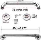 16-Inch Stainless Steel Safety Grab Bar,installation screws and anchors are included.Each ZUEXT 16 inch shower handle comes with a free self-adhesive stick-on hook which can support up to 22lbs weight stainless steel safety bars 16 inch Able to support up to 500 lbs of pull force to provide a stable, reliable handhold; Screw Length 1.6 inch/ 4.0cm. Made of stainless steel for a lasting strength and quality. Concealed secure mount design allows for easy, secure installation at any angle, allows you to cover any unsightly screw holes and continue a clean, sleek trend to your bath and shower Use safety grab bars in the bathroom, kitchen, along stairways, or in the laundry room for additional fall prevention, especially for the handicap, elderly, pregnant women, injury, and children The total length is 16 inch. 1.0-inch bar diameter allows enough space to easily grip bar for added support Safety grab bars in the bathroom, kitchen, along stairways, or in the laundry room for additional fall prevention, especially for the handicap, elderly, pregnant women, and children. Not only apply to use as bath shower grab bar, but also can hold clothing,etc. wall handles elderly 16 Inch shower handicap bar 16 Inch grip bars elderly hand bars bathrooms 16 Inch bathroom rail grab Product Description ZUEXT Polished Chrome Finished SUS304 Stainless Steel Bathroom Grab Bars - 12/16/24/32/40 Inch Optioinal Overview ZUEXT 12 / 16 /24 / 32 / 40 Inch Concealed Screw In Chrome Finished Stainless Steel Grab Bars combine quality, strength and durability with a classic design to bring safety and stability to your bathroom. With only 2 screws required per side, the 3 hole flange gives you installation flexibility for your unique grab bar mounting needs. These bath grab bars accommodate hands of all sizes. ZUEXT shower grab bar is rated for supporting up to 500 pounds of pull force. Accidents can occur, but be ready before they happen. Being safe is easier than you think. Easy Installation Enjoy greater peace of mind in the bathroom with ZUEXT Shower Grab Bar Handle. It provides a reliable handhold whether you're showering, bathing,or using the toilet. ZUEXT wall grab bars for the elderly allows for easy secure installation at any angle and helps ensure proper alignment. Warm Notes The lengths of ZUEXT Bathroom Safety Grab Bars here were measured from TUBE TO TUBE. Overall Total Length: The overall total length of the grab bar are in fact longer than the tube to tube length. Chrome Finished Home Use/Commercial Safety Grab Bar Specifications Tube Diameter of ZUEXT Safety Grab Bars: 12/16 Inch Home Use Grab Bar: 1.0 Inch 24/32/40 Inch Home Use or Commercial Use Grab Bar: 1.25 inch Material of Grab Bars: SUS304 Stainless Steel Material of Screws: SUS304 Stainless Steel, 1.6" in length (Other brands are 1.0" only) Package Includes: 2x Stainless Steel Shower Grab Bar (Polished Chrome) 1x Manual 2x Screws Bag(Screws are 1.6 inch / 4cm in Length, other brands are just 1.0 inch / 2.5cm) SUS304 Stainless Steel Tubes - Built to Last All ZUEXT Grab bars for bathroom are made of SUS304 Stainless Steel tubes , which support formal material testing . Strong corrosion resistance, no rust, durable for more than 10 years ! Super Easy Installation ZUEXT Bathroom grab bar engineers have prepared a quick-step setup user guide (come with bars) to get your grab bar installed within minutes. All installation anchors are included for quick and correct installation. Various Installation Angles ZUEXT Chrome Finished Bathroom Grab Bars come in a variety of lengths to fit your bathroom decor and space needs. Durable, Reliable, Stylish and Multifunctional Constructed from durable rustproof stainless steel, ZUEXT handicap garb bar rail features a corrosion-resistant finish to ensure lasting performance. Stylish end covers conceal the mounting hardware for a clean, seamless look. Make bathroom safety a part of your home decor. ZUEXT grab bars for bathroom not only apply to use as bath shower grab bar, but also hold clothing,towel bar, inexpensive basement and attic stairway handrail,etc. How to Install ZUEXT Bathroom Safety Bar? Step 1: Locate wall studs where you want to install the handle; Step 2: Drill holes through the ceramic tiles or tub enclosure into the studs to start the screws; Step 3: A cover plate can be slide over the mounting plate with the holes.