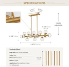 Store New Arrivals Add to Favorite View Feedback Contact 16 Lights Modern Rectangle Chandelier Gold Pendant Ceiling Light Fixture Clear Glass Shades Gold Chandeliers for Dining Room Kitchen Island Description Item model number MO-8814 Light Source Type LED Style Modern Number of Items 1 Power Source Corded Electric Fixture Type Non Removable Number of Light Sources 16 Control Method Touch Embellishment Crystal Batteries Included? No Lighting Method LED Maximum Compatible Wattage 7 Watts Controller Type Push Button Unit Count 1.0 Count Room Type Laundry Room, Kitchen, Living Room, Game Room, Dining Room Assembly Required Yes Product Dimensions 39.37"L x 14.57"W x 18.11"H Material Glass, Metal Installation Type Semi Flush Mount Model Name 16 Lights Modern Rectangle Chandelier Finish Type Polished Specific Uses For Product Indoor use only Indoor/Outdoor Usage Indoor Bulb Base G9 Light Color Gold Batteries Required? No Warranty Type Limited Item Weight 14.52 pounds Light fixture form Chandelier Special Features Dimmable, G9 led bulb, max 7watts per bulb, DON'T use any halogen bulb to this light fixture Special Feature Dimmable, G9 led bulb, max 7watts per bulb, DON'T use any halogen bulb to this light fixture Part Number MO-8814 Shade Color clear Mounting Type Ceiling Mount Color Gold Wattage 112 watts Shape Rectangular Voltage 120 Volts Plug Format A- US style Recommended Uses For Product Indoor Shade Material Glass Finish types Polished Included Components Ceiling Plate, Gold Light Frame, Glass lampshades Switch Type Push Button 【Modern Luxury Fixture】: 16 lights chandelier features clear glass shade with the gold finish, which makes the chandelier full of design and absolute stunning when light turns on. This elegant chandelier light fixture, perfectly match with casual spaces, residential houses, or any commercial areas. 【Unique Design】: The gold chandelier has 6 of 12" connection rods , you can choose to use 1 to 3 rods to your desire height . The lamp rod can rotate 180 degrees horizontally, so you can easily adjust the angle you like. The rods can be connected by the connector provided. 【Light Source】16 * G9 bulb socket, G9 led bulb can be searched online, DON'T use any halogen bulbs. (support 7 watts per bulb). Fully dimmable when used with a dimmable bulb and compatible dimmer switch.(Bulbs and dimmer switch not included). 【Assembled Dimension】 Length: 39.37"/100cm x Width:13.8"/35cm x Height:14"/36cm; Glass Lampshade: D7.5/19cm. Ceiling Plate: L15.7"/40cmx Width 4.7"/12cm. 【120% No-worry After Sales】30 days return without worry, 100% . 24/7 customer support with technical advice. Please don't tighten it too much to avoid the glass to crack at the joint. Product Description Gold Dining Room Chandelier Decorate with the globe glass lampshade, this gold rectangle chandelier will never let you down with its amazing lighting effect! Gold Island Pendant Light With a gold finish, the light frame craftsmanship highlights the extraordinary and uniqueness of this luxury gold chandelier, showing its luxury and atmosphere. Suitable for sloped ceiling. 1 Recommended Height 2 Available Function 3 For Sloped Ceiling 4 Install Lampshades How Should We Choose A Chandelier Size for Dining Table? If you are hanging the rectangle chandelier above a dining table or kitchen island, the chandelier’s bottom should be 30 to 36 inches away from the table top. You can also decide the size of the chandeliers based on the size of your dining table or kitchen island. We generally recommend that the width or diameter of the chandelier should be between 1/2 and 2/3 of the width of the dining table or kitchen island to create a good balance of proportions. 1 Suitable Scenes 2 Fine Details 3 Unlighted Effects 16 Lights Modern Gold Rectangle Chandelier Is this light suitable for sloped ceiling? Yes, we upgraded this gold chandelier light fixture, it has 2 link rings that are available to use for a sloped ceiling. What type of dimmer switch is compatible? This modern gold rectangular pendant light is suitable for use with any dimmer switch, the important key point being that a G9 LED dimmable bulb is required to achieve the dimming effect. Do you have matching extension rods for this gold chandelier? Yes, this gold dining room chandelier includes 6 of 12" connection rods. Please contact Moooni if you need extra extension rods. Does this fixture come in black? This modern linear chandelier can be done in black, please contact Moooni if you need it! What bulb should we use for this pendant light fixture? This gold chandelier for island kitchen is required to use G9 bulb, maximum wattage is 7 watts per bulb (equivalent to 75 watts for halogen bulbs). ABOUT US We offer the best prices around on high quality products. Our E-store includes media such as books, movies, music and games while offering electronics, toys, sporting apparel, clothing, tools, general home, garden items and more. SHIPPING We are always working hard to ensure your package arrives as soon as possible. Please understand that some factors like weather, high postal traffic, and the performance of shipping companies are outside of our control. We offer free shipping to the lower 48 states and ship within 2 business days of payment, usually sooner. We do not accept P.O. Boxes. Please provide a physical address. For shipping outside of the continental USA, we only use eBay's Global Shipping Program.The item is shipped to KY and then sent to the rest of the world. International customers are responsible for all duties and taxes. Continue to check out in order to calculate costs for shipping the item to your country. Messages regarding eBay's Global Shipping Program MUST be directed at eBay EXCLUSIVELY. RETURNS We offer a 30-Day Return Policy on items which you are not completely satisfied with. You have the option for a full-refund or an exchange of the item. No returns are available on items shipped outside of the USA. PAYMENT We acce