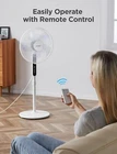 16" Oscillating Pedestal Stand Up Fan | Adjustable Height | Ultra Quiet DC Motor | Remote Control | 12 Speed | 12-Hour Timer | High Energy Efficiency | for Bedroom Home Office Use | White ULTRA QUIET & ENERGY EFFICIENCY: Equipped with DC silent motor, the pedestal fan is engineered for quiet operation (as low as 38 dB) which is less than half as loud as most standard fans. It is perfect for your bedroom or nursing room. The DC motor also offers greater energy efficiency and save up to 35% of the energy cost than its AC counterpart POWERFUL WIND & WIDE OSCILLATION ANGLE: 12 speed settings and 12-hour timer design allow you to customize your breeze needs in your house, living room and office. With 5 high-quality blades and a strong motor, this oscillation fan could provide strong wind to boost the cooling effect when using with air conditioner. The 85° oscillation angle and 24° tilt angle will extend wind the coverage to every corner of the room EASY TO USE: Featuring blue LED display, remote control and auto power off functions, the floor fan is designed for long-range and full function control (up to 6 meters). With the height adjustable between and 4 feet, it could get you fully covered no matter you are sitting on the couch or lying in bed SAFETY FIRST: The big and heavy-duty base could provide additional stability for the fan during its operation. The built-in overheat protection would automatically switch off the fan when the motor overheats. The kid friendly safety grid will create a safe and cool environment for every member of the family MANUFACTURER WARRNTY: With confidence in the quality of our product, offers a 1- manufacturer with your purchase of any of our product VOLTAGE: 120 volts 16-Inch 12-Speed Oscillating Quiet Pedestal Fan with 12-Hour Timer, Remote Control and Adjustable in Height with DC Motor, .