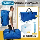 Return Policy Fast Delivery Trusted seller 16 Pack Heavy Duty Extra Large Moving Bags with Backpack Straps & Large Vacuum Storage Bags Moving Supply Combo, Moving Totes with Handles & Zippers for Space Saving, Fold Flat, Includes Vacuum Bags Product Description DURABLE & HEAVY DUTY MOVING BAGS COMBO: Includes 8 extra large storage totes (each can hold up to 65 lbs) and 8 large vacuum storage bags. Our extra large moving bags & vacuum bags combo is your must-have essential for moving, storage and organization. EXTRA LARGE SIZE & SPACE SAVING: Each moving bag is 29.1" W X 13" H X 14.2" D - 94 liters (25 gallons) volume. Use the large vacuum storage bags in the pack to create up to 80% more space. Plenty of space to store and protect just any of your items. STURDY & EASY TO CARRY: 3-layer reinforced stitches and dual zipper design enhance the load-bearing of our packing bags. With long carry handles & strong backpack straps, you can carry the bag like a tote or backpack with freeing hands. FOLDABLE & REUSABLE: Our large storage bags can be folded flat and into small size for easy storage in a drawer, closet, car or luggage. Mobile, lightweight and great economical alternative to moving boxes. Can be used multiple times. MULTI-USE: These heavy duty bags can store clothes, shoes, towels, pillows, comforters, blankets, toys, holiday decor and more! Perfect for moving in and out of college dorms, travel, hiking, camping and more. Shipping Returns Payment Shipping Shipping is FREE to all addresses other than APO/PO boxes in the lower 48 states. All our stock ships from US-based warehouses. Shipped via USPS or UPS (depending on location and package weight) Unless stated otherwise, all orders will ship within 24-72 hours of your payment being processed. Check our feedback to see the great reviews of FAST shipping we offer. Returns Seller does not accept returns Payment We currently accept payment via eBay managed payments only. Once payment is cleared, we will dispatch your shipment within 1-3 business days. Please refer to the "Shipping" tab for more information regarding shipping speed to your destination.
