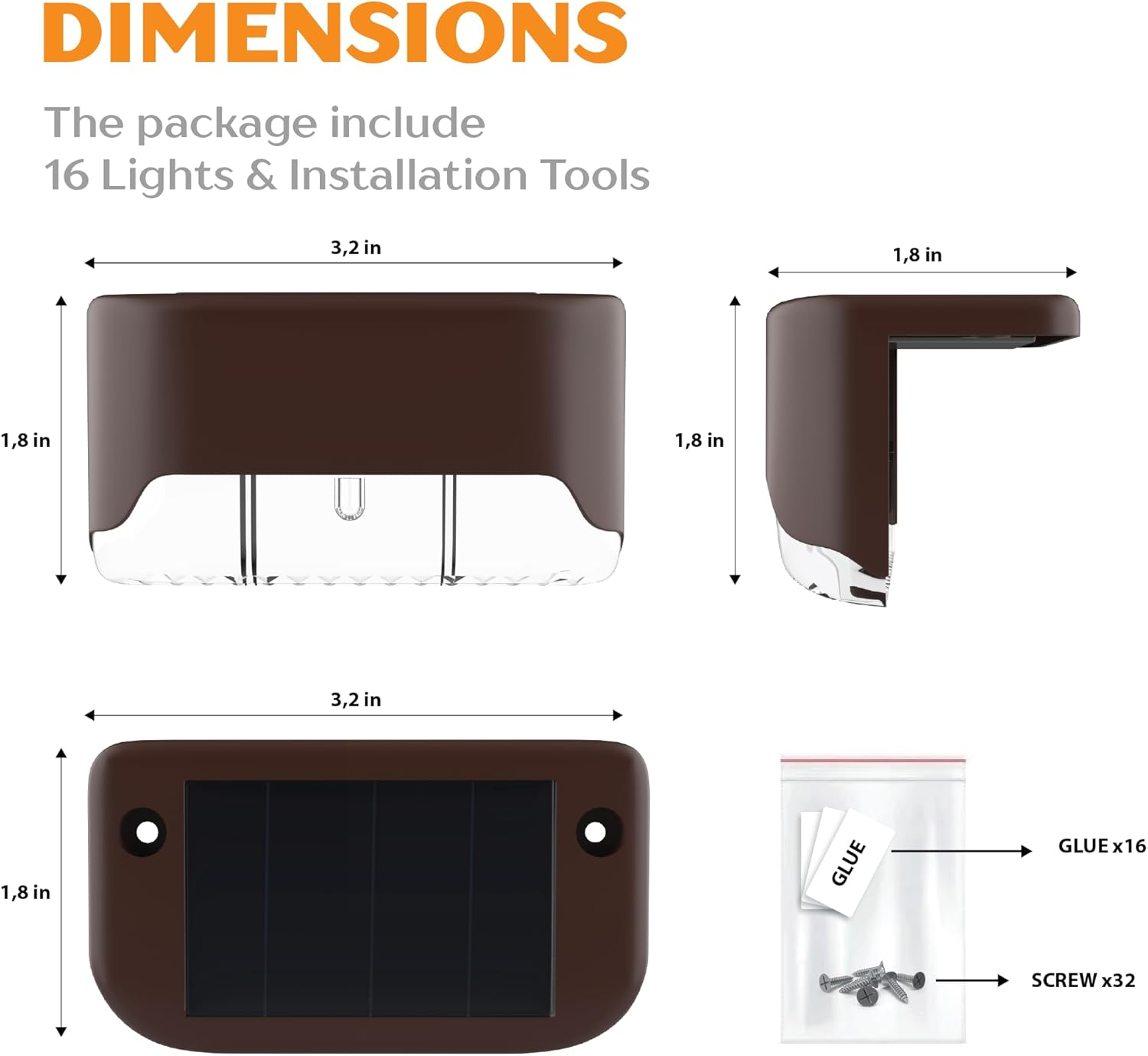 16 Pack Solar LED Deck Lights - Color Changing & Waterproof for Stairs & Outdoor Spaces