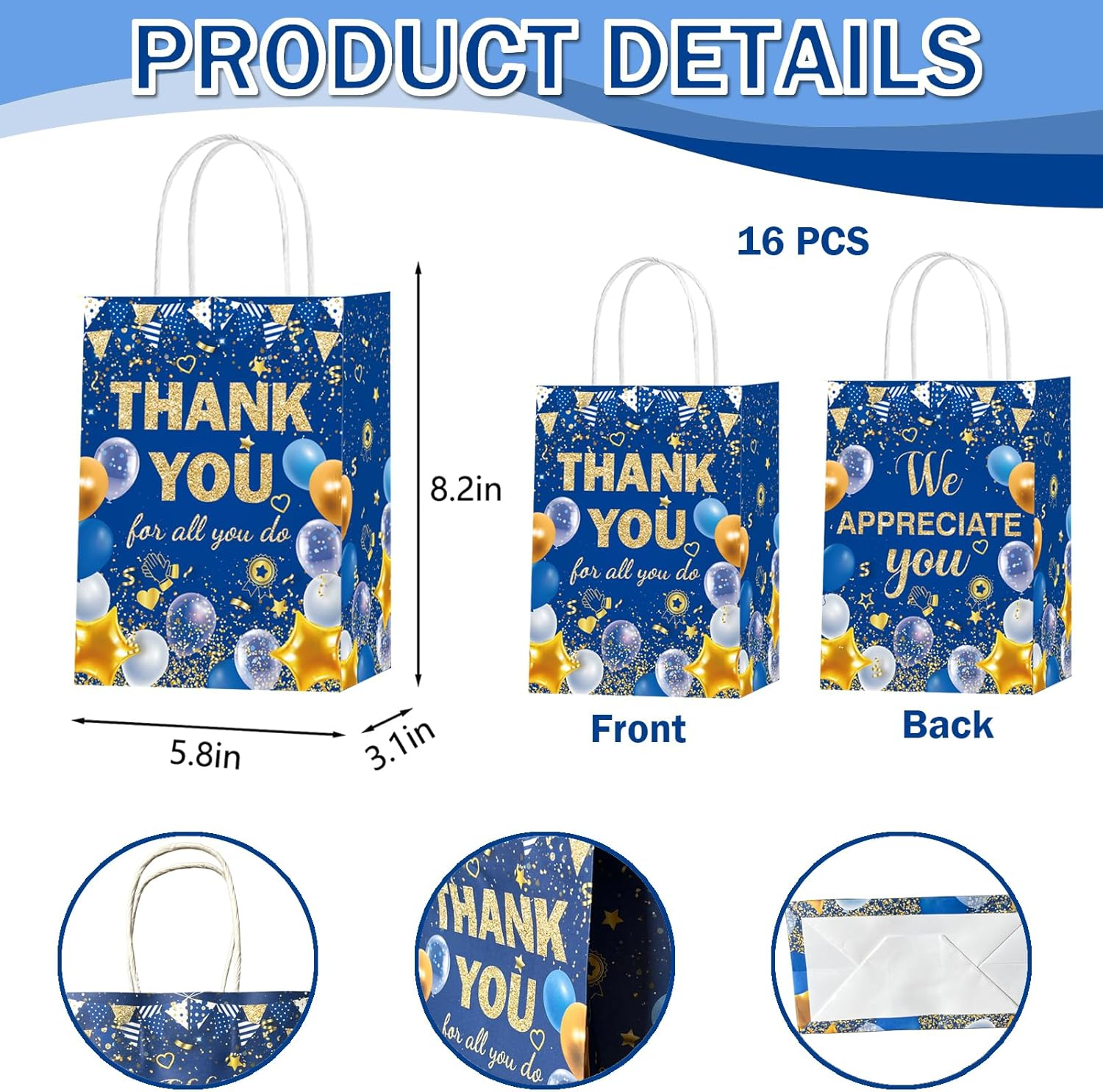 Store New Arrivals Add to Favorite View Feedback Contact 16 Pcs We Appreciate You Gift Bag Thank You for All You Do Goodie Bags for Employee Staff Appreciation Gifts Pastor Teacher Doctor Retirement Appreciation Party Description Item model number 1 Unit Count 16.0 Count Number of Items 16 Color blue Pattern Letter Print Product Dimensions 8.3"L x 5.9"W x 8.3"H Material Paper Country of Origin China Package Dimensions 12.71 x 7.4 x 1.73 inches Item Weight 9.9 ounces Theme Appreciation, Thanksgiving Occasion appreciate week Included Components Gift Bag, Gift Tag What You Will Get: : you will receive 16 blue Thank You for all you do we appreciate you gifts bags included in every package,each paper bag is 8.2*5.8*3.1 inches in size. High Quality: These thank you bags are made of high-quality paper materials, lightweight and durable, perfect for appreciate week party favors, is a good helper for wrapping candy, gifts and cookies. we appreciate you Theme Design: the goodie bags printed with the words of Thank you for all you do and we appreciate you,simple but elegant, adding nice additions to your presents; You can send them to your colleagues, mates, employee. Wide Applications:Whether it's a Pastor Appreciation, Teacher Retirement, or Employee Thank You Party, our appreciative bag is a great choice. Satisfaction Guarantee: If any problem or you need help, Kindly contact us , we will solve it for you at once and accept replacement and refund. The blue and gold color scheme exudes sophistication, making it suitable for various occasions, including office celebrations, Pastor Appreciation, retirement parties,nurses week,graduations parties, and employee Thank You Party Specifications: Material : kraft Color : blue Size : 5.9 x 3.1 x 8.3 inches/ 15 x 8 x 21 cm Package includes : 16 x Thank you paper bag Notes : Manual measurement, please allow slight errors on size. The color may exist a slight difference due to different screen displays. Policy on Product Sourcing and Fulfillment Dear Valued Customers, We would like to clarify an important aspect of our business operations to ensure transparency and trust in our relationship with you. Product Fulfillment: Fulfillment by Amazon (FBA): The products are stored in Amazon Fulfillment Centers. This storage solution ensures that the inventory is kept in a secure and climate-controlled environment, which helps maintain the quality and safety of the products. Efficient Delivery: Utilizing Amazon's fulfillment services allows us to leverage their robust logistics network to provide you with fast and reliable shipping. This means you receive your purchases in a timely manner with the added assurance of Amazon's trusted delivery systems. Customer Assurance: Quality Control: Every product is carefully selected and undergoes rigorous quality checks before being listed for sale. Our commitment is to provide you with high-quality items that meet your expectations. Secure Storage: Amazon's Fulfillment Centers are renowned for their high standards of security and efficiency. Your products are stored safely until they are shipped to you. Customer Support: Should you have any questions or concerns regarding your purchase, our customer support team is readily available to assist you. We are dedicated to ensuring your satisfaction with every transaction. We appreciate your business and are committed to providing you with a seamless and satisfactory shopping experience. Thank you for your trust and understanding. Sincerely, -Manager- Shipping Policy and Expectations Dear Valued Customers, We are committed to ensuring that your package arrives as quickly as possible. However, we kindly ask for your understanding regarding certain factors that may occasionally affect shipping times. Our Commitment: Prompt Processing: We strive to process and dispatch your orders promptly to minimize any delays. Reliable Shipping Partners: We work with reputable shipping companies to ensure your packages are handled with care and delivered efficiently. External Factors: While we do everything within our power to expedite your order, please note that some factors are beyond our control: Weather Conditions: Severe weather can impact shipping routes and cause delays. High Postal Traffic: During peak seasons, such as holidays, the increased volume of packages can lead to longer delivery times. Shipping Company Performance: The performance and schedules of shipping companies may vary, potentially affecting delivery times. We appreciate your patience and understanding in these situations. Rest assured, we are doing everything possible to get your package to you as soon as possible. Customer Support: If you have any questions or concerns about your order, please do not hesitate to contact us. Our customer support team is here to assist you and provide any necessary updates on your shipment. Thank you for your trust and continued business. Shipping Policy and Customer Satisfaction Shipping Information: Service Area: We offer shipping to the lower 47 states. Please confirm with us about the delivery date before completing your purchase. Thank you. Address Requirements: We do not accept P.O. Boxes. Please provide a physical address for delivery. Shipping Restrictions: Unfortunately, we are unable to ship items to the state of Ohio and California due to shipping agreements and restrictions. International Shipping: eBay International Shipping Hub: For shipping outside of the continental USA, we only use eBay's International Shipping Hub. The item is shipped to Illinois and then sent to the rest of the world. Duties and Taxes: International customers are responsible for all duties and taxes. Please continue to check out to calculate the shipping costs for your country. Inquiries: Messages regarding eBay's International Shipping Program must be directed to eBay exclusively. Customer Satisfaction: We try our very best to ensure every customer is completely satisfied. If there's a problem, please mes