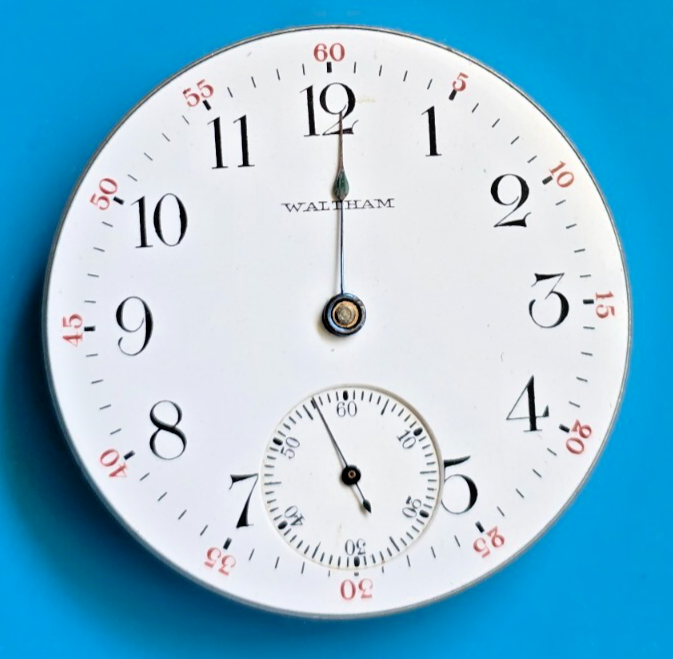 $ 63.368 SIZE WALTHAM GRADE "W. M. ELLERY" 7 JEWEL POCKET WATCH MOVEMENT !KEEPING TIME!