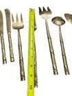 16 Thailand Nickel Bronze Bamboo Flatware Knives Serving Spoons & Forks Carving Good vintage condition . Normal signs of wear and aging, some patina. Minor scuffs and scratches and some discolorations. Please study pictures carefully before purchasing Feel free to ask us any questions. Thank you for visiting our store! -1