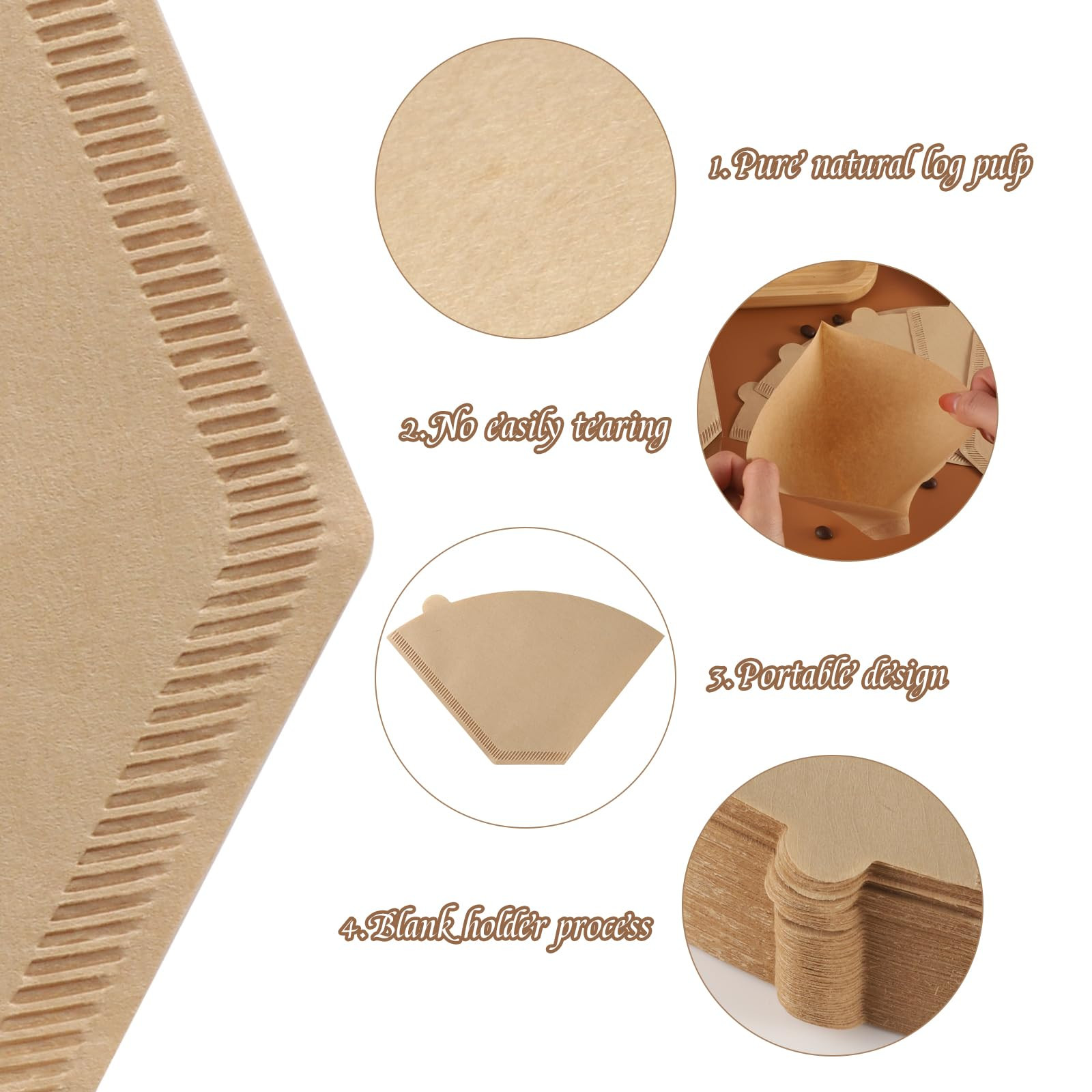 Usage Tips: Note that the coffee filter paper should be folded before use and then placed in the filter cup, before adding coffee powder, you should wet the filter paper with hot water to make it fit better Capacity: No. 4 coffee filter paper has a capacity of 8-12 cups, suitable for most filter cups, hand-pour coffee machines, automatic drip coffee machine or Americano coffee machines that require No. 4coffee filter paper, compatible with Ninja, Cuisinart, Hamilton Beach coffee makers Excellent Taste: The coffee filter paper is of moderate thickness and is not easy to tear. It can filter out most of the natural coffee oil and all coffee grounds, making the taste smoother, rich and delicious, and with moderate bitterness Safety: Disposable coffee filters are made of natural wood pulp, unbleached, compostable, clean and odor-free Package Includes: 160 count of size 4 cone coffee filters, enough quantity for you to use, please check the product size chart before purchasing to ensure the size matches