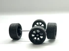 1:64 Custom WHEELS & RUBBER Tyres BLACK 7 SPOKE Real Rider style Fit hotwheels