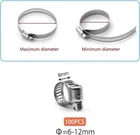 Small Hose Clamp, 100 Pack Hose Clamps Stainless Steel Worm Gear Fuel Line Hose Clamps, 6-12mm (1/4-1/2 inch) Item Description Package includes 100 pieces 3/8 inch hose clamps. Stainless steel hose clamp clamping ranges from 6 to 12mm (1/4 to 1/2 inch). 304 Stainless hose clamp provides maximum corrosion resistance to salt and most chemicals. Adjustable style hose clamp for a variety of applications for marine, auto, water pipes, fuel lines, etc... Use a screwdriver to tighten or loosen the screw of hose clips then adjust the size, Secures the pipe clamp is tightly in place. › See more product details Made of 304 stainless steel, corrosion-resistant, will not rust and break. These hose clamps can be easily released or tightened the bolt by a screwdriver to adjust the band diameter range. widely used in securing hoses, pipe, fuel lines, automotive, marine, etc. Please check the specific dimensions of the product based on the second picture. Measurement is the diameter of the hose clamp. Please measure the size of your pipe before purchasing it. Payment We accept payment only through PAYPAL Shipping We ship products worldwide through standard express courier service, it will reach within 7 to 10 days to abroad buyers, we ship the product after recieved clear payment and give full information about shipment to the buyer Return We accept product return within 7 to 21 days from delivery date but product should be in original position and not in damaged condition,the return shipping charges will be buyer responsibility