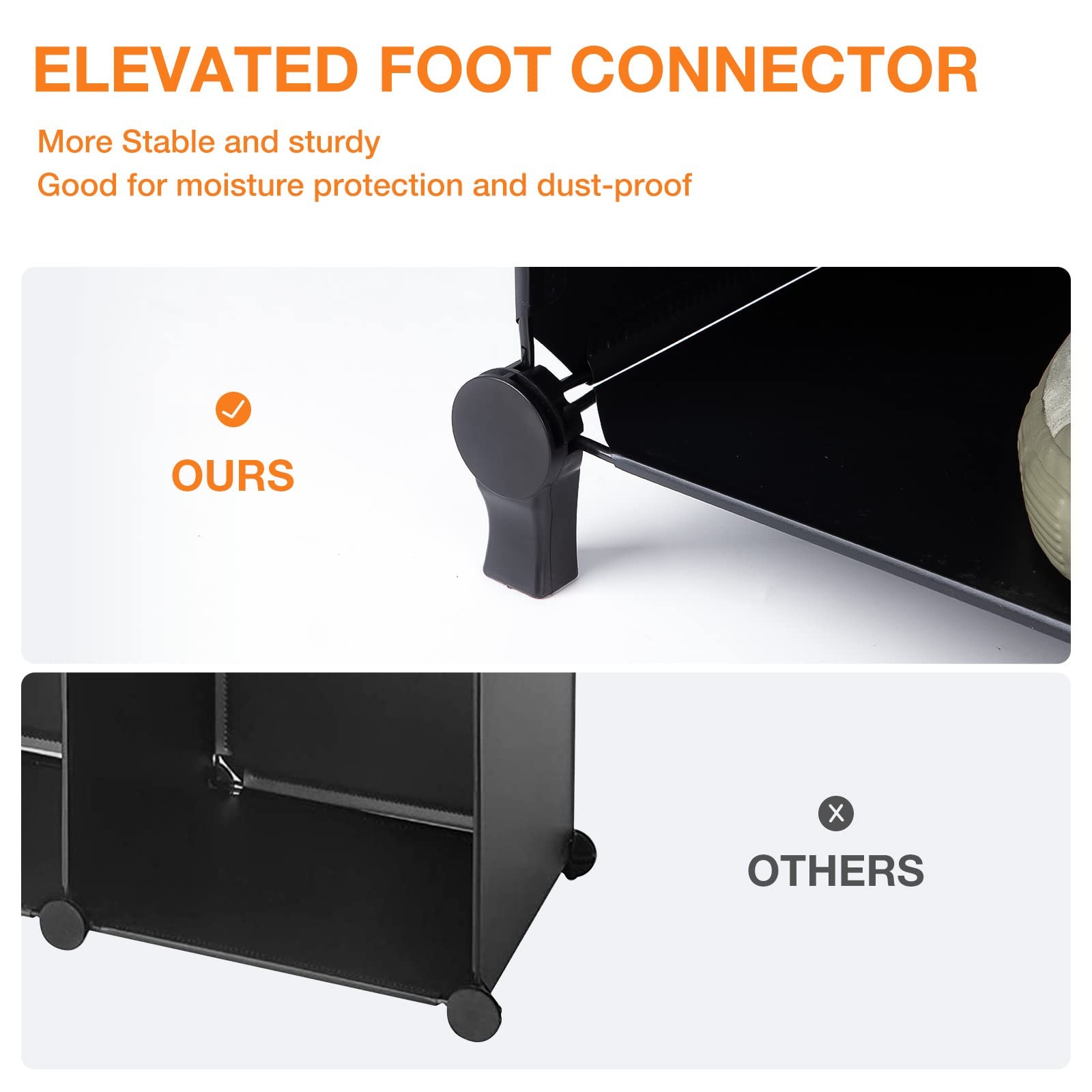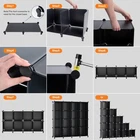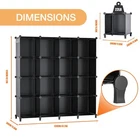 16-cube closet organizer, provides large space for storage, helps you save space, and keeps many things organized well and neat, which is the best storage solution for your home, office or college dorm! Wide Application: Our closet organizer can be widely used at home, office or college dorm. It helps you store so many things and separate them in well organized way. Stable Structure: Constructed from high quality ABS connector and thickened PP panel, the max load capacity of each cube is up to 15 lbs, this closet shelving is really stable. Space Saving: There are 12 cubes available for storage, large space provided, which can store many things, save your room space and keep your room clean and tidy. Modern Design: This book shelf is black in color and simple in design, so that can easily match any style no matter where you place it. Specifications: Material: PP plastic panel, ABS connector, iron wire Each Cube Size: 12"L x 12"W x 12"H Product Size:48"Lx12"Wx49"H Product Weight: 14.33 lbs Package Contents: 56 x Panel 14 x Foot Connector 44 x Standard Connector 1 x Hammer 1 x Instruction 1 x Hook 30 x Zip ties 【Organizer your room】The closet organizer can store various kinds of items as you want: books, clothes, shoes, toys, artworks, decorations, handbags, etc. There are closet shelves provided, you can create the closet shelves in varieties of shapes to meet different spaces, as entryway, study room, bedroom, kids room, or office. A great solution for lightweight storage needs. 【Stable Structure】The storage cubes each size is 11.8" x 11.8" x 11.8" (30 x 30 x 30cm), consisting of thickened polyethylene plastic sheet, sturdy metal frame and high quality ABS resin connectors.Please note: it fits storage bin that is smaller than 11.5*11.5 inches. Each cube of the organizador de ropa holds up to 22 lb. This is a very stable structure that won’t tip or fall over . 【Easy to assemble】Simple modular structure makes it easy to install and disassemble. Following the guide, use the hammer to check if every sheet is fully locked in the deepest layer of the connector after finishing every layer assembling, then you shall get a firm cube storage organizer. 【No Fear of Dust】The higher legs raise the cube organizer from the floor, giving a light look, making it more stable and not easy to get wet or dust. And the plastic panels of the cube bookshelf are waterproof and easy to clean, making having an organized life much easier! 【Customer Service】With classic black panels and Custom Layout, the clothing organizer is perfectly minimalist, lending a modern flair to your space and cleverly matching other furnishings. If you have any problem about the closet organizers and storage shelves, don't be hesitate to contact us. We replace or refund any defective products.