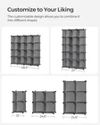 About this item [Organize Your Life] Lots of clean, neat storage space in these premium DIY cube organizers. This modern design is in a fashionable gray color that will go well with your furniture, carpet, and decor [Easy to Assemble] The cube storage organizer is easy and quick to stack together with its modular structure; a rubber mallet included helps assemble the rack by yourself [Store More Possessions] These 11.8 ” D x 11.8 ” W x 11.8 ” H cubes are made of PP Plastic panels with sturdy metal wire frames and ABS plastic connectors. Each cube holds up to 22 lb. This is a very stable structure that won ’ t tip or fall over [Use Many Ways] Store clothing, shoes, or bags in these storage cubes in your living room, entryway, bedroom, or office. Use it as a room divider, make a DIY playpen for your pet, or assemble it into different forms within the limit of the included parts [No Fear of Dust] The plastic panels of the cube shelving are waterproof and easy to clean, making having an organized life that much easier!