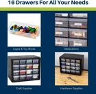 This storage cabinet is a game-changer for keeping small items organized! The compact size fits perfectly in tight spaces, yet the 16 drawers provide plenty of room for screws, craft supplies, or office essentials. The heavy-duty plastic feels sturdy, and the smooth-gliding drawers make access easy. Love how versatile it is—works great in my garage for tools and at home for craft supplies. Highly recommend for anyone needing smart, space-saving storage!