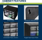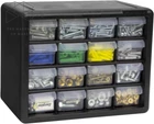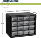16-Drawer Plastic Drawer Storage Cabinet for Garage Organization, Bead Organizer plastic HEAVY DUTY CABINET WITH 16 DRAWERS: The 16-drawer small storage cabinet is made in the U.S.A. from rugged, high-impact plastic and measures 10-1/2" W x 6-1/2" D x 8-1/2" H; Organizer drawers - 6" x 2-7/32" x 1-9/16" GARAGE ORGANIZATION: The small parts organizer is great for garages and workshops for both homeowners and businesses; The plastic storage drawers can be used as tool box, screw organizer or for battery storage; Keep nails and other small parts accessible CLASSROOM ESSENTIALS: Teachers can use the stackable storage drawers for classroom organization; Use it as a teacher toolbox, art supply storage organizer, craft storage cabinet for scrapbook supplies, and more HOME STORAGE AND ORGANIZATION: This plastic storage cabinet offers many uses around the home; It can be a lego storage organizer, craft organizer, or sticker organizer; Use it for makeup storage and organization or for medicine and first aid supplies FEATURES: Stack cabinets securely or use keyhole slots to mount for wall storage; Finger-grip drawer pulls provide easy access; Rear stop tabs prevent contents from spilling; Drawer dividers are included and molded into the back of the cabinet Product Description The Akro-Mils 10116 16-Drawer Plastic Storage Cabinet Organizer with Drawers is a great solution for all your storage needs. This heavy-duty cabinet is made in the U.S.A. from rugged, high-impact polystyrene plastic and features 26 large and small plastic drawers offering ample storage space for all your small parts and tools. Plastic organizer drawers inside dimensions: 5-1/4-Inch x 1-11/16-Inch x 1-1/2-Inch. Whether you're looking to organize your garage, workshop, classroom, or home, this storage cabinet has you covered. Garage owners and businesses will love the versatility of this cabinet, with the plastic storage drawers perfect for use as a hardware organizer, screw organizer box, or for battery storage. Keep your nails and other small parts accessible with ease. Teachers can use the cabinet for classroom storage, as a teacher toolbox, art storage, craft storage box, for scrapbook supplies, and more. This plastic storage cabinet is also perfect for home storage and organization. Use it as a lego organizer, craft organizer, hobby organizer, or bead storage organizer. It's even great for makeup storage and organization or for medicine and first aid supplies. And with the ability to stack cabinets securely or wall-mount them using keyhole slots, along with finger-grip drawer pulls and rear stop tabs to prevent contents from spilling, this cabinet has everything you need to keep your items safe and organized. Cabinets have dividers included. Included dividers are molded into the back of the cabinet (remove with scissors). Additional dividers can be purchased separately. From the Manufacturer 10116 Cabinet stacks securely and can also be wall mounted with keyhole slots. Clarified polypropylene, dividable drawers offer easy content identification. Finger-grip drawer pulls provide easy access and rear stop tabs prevent contents from spilling. Akro-Mils products save time and money by helping to increase material handling efficiency in virtually any industry. Our broad range of storage, organization and transport products are used to shorten assembly times, maintain accurate inventories, optimize storage space and improve parts protection. Our mission at Akro-Mils is a commitment to manufacturing innovative storage and material handling products of uncompromising quality at a fair price. We support this commitment with professional representation and consistent, superior service to meet the needs of our customers. For quality products backed by more than 60 years of reliable delivery and responsive customer service, we invite you to turn to the Akro-Mils advantage Item model number 10116 Style 16 Drawer Pattern Cabinet Country of Origin USA Warranty Description 1 year. Thickness 1 Inches Batteries Included? No Batteries Required? No Assembly Required No Brand Does not apply Material Plastic, Polystyrene Installation Method wall mount Pattern Name Cabinet Frame Material Plastic Number of Drawers 16 Is Discontinued By Manufacturer No Included Components Plastic Drawer Cabinet Item Package Quantity 1 Number Of Pieces 16 Item Weight 2.7 pounds Special Features Finger Grip, Unbreakable, Stackable Part Number 10116 Mounting Type Wall Mount Certification certified frustration-free Color Black Shape Rectangular Manufacturer Akro-Mils Product Dimensions 6"D x 11"W x 9"H Size 16-Drawer 10.5" x 8.5" Shipping Fast shipping is very important for us. Our standard US shipping service is FREE. Your order will be shipped within 2-3 business days upon full payment received. Your order will be delivered within 2-3 business days after the handling time. We only ship to the confirmed PayPal address. We reserve the right to cancel any order for any reason at any time. We are not responsible for undeliverable addresses. Returns and payment We offer a 30 days return policy from checkout winning date. We allow only PayPal as payment method FeedBack Your feedback very important to us, after you get your package and you are satisfied with our service please leave us positive feedback If you have any problem with your order / any questions please before leave any type of feedback For any questions, using eBay contact system Please visit our eBay store to check out other items for sale! Thank you for shopping at our store.