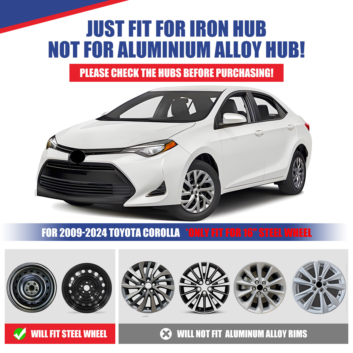 16Inch Set of 4 Wheel Rim Covers Snap On Hub Caps Fits for 12-14 TOYOTA CAMRY Feature: π Please Ensure to Check your Tire/Wheel Size Before Purchase! Designed for 16" Stock Steel Wheels and will not fit over alloy wheels π For Replacement with Fast & Easy Snap-on Installation - Made from Premium ABS Material β Lab & Road Tested for Performance and Ultimate Durability π Adjustable Retention Rings assures Firm Grip Gives Support to the Hubcaps Making Sure They Stay in Place. Locate the Curve on the Retention Ring and Match to the Tire Air Valve to Install π Installation Instructions & Video Available - Please refer to the Video and images available as well as detailed instructions below for assistance π Wolfx Wheel covers fit most models of vehicle brands including Acura, Chevrolet, Dodge, Ford, Honda, Hyundai, Kia, Mazda, Mitsubishi, Nissan, Subaru, Toyota, Volkswagen and more Specification: Fits either LH (Driver Side) or RH (Passenger Side) Rear and Front Type: Wheel Hub Caps Compatible Wheel Diameter: 16 inches Features:Car Wash Safe, Easy to Install, No Tools Required Material: ABS Number in Pack: 4 Wheel Type: Steel Placement on Vehicle: Front, Left, Rear, Right Installation Type: Snap-On Fitment: For 2017-2019 TOYOTA COROLLA Compatible with: 2009-2013 TOYOTA COROLLA 2009-2014 TOYOTA MATRIX 2014-2016 TOYOTA COROLLA 2020-2025 TOYOTA COROLLA 2023-2025 TOYOTA COROLLA HYBRID Packing Includes: 4Pcs 16inch Wheel Covers Payment Delivery details Terms of sales About us Contact us Payment π We accept PayPal (Recommended), credit card, VISA, Google Pay & Discover etc. π Please submit your payment within 7 days after your purchase. π If not, eBay will automatically open an Unpaid Item Dispute on our behalf if the item(s) are not paid within 7 days. Delivery details π Please double check your delivery address and contact information. π All items will be shipped within 1 business days after payment received. π Tracking numbers will be easily accessible ASAP they are created and processed. Terms of sales π Free 30 days Return, we will cover the return post fee. π If a defective product was received, please do not hesitate to message us via eBay message. π We will response in 24 hours in business to resolve the problem π We stand behind our products. Items can be returned for exchange or full refund within 30 days from the date you receive. About us π Wolfstorm has a huge warehouse and office located in the United States. π All US domestic 48 states customers are able to benefit from the FREE SHIPPING services. π Our experienced, professional customer service representatives offers prompt and courteous service. π Best quality products, outstanding services and professional experience keep our customers. Contact us π Please feel free to contact us if you have any problems. π Emails will be replied within 24 hours in working days. π After hours emails will be replied on the next business day. On Mar 25, 2025 at 22:25:19 PDT, seller added the following information: