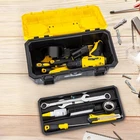 **16-inch Toolbox. Dual-layer Space.** Tray-style dual-layer storage with expanded capacity for easy organization. Reinforced body structure with honeycomb ribs on the bottom, thickened walls, and even weight distribution. Ideal for mechanical repairs, household maintenance, engineering work, and efficient storage—your perfect life assistant for getting twice the result with half the effort. Ergonomic handle with anti-slip pattern for a comfortable grip. Top storage compartment for small parts. Security latch for added lockability and enhanced safety. Toolbox - Dual-Layer Design: Features a tray-style dual-layer storage system, providing expanded capacity for easy and organized tool access. Durable & Reinforced Structure: Built with a thickened body, honeycomb ribbed base, and reinforced frame for even weight distribution and long-lasting durability. Versatile Use for Repairs & Storage: Perfect for mechanical, household, and engineering repairs, as well as general storage—maximizing efficiency in any task. Ergonomic & Secure Features: Equipped with an anti-slip patterned handle for a comfortable grip and a lockable security latch for added safety. Convenient Top Storage Compartment: Includes an additional top storage box for small parts and accessories, keeping everything within easy reach.