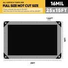 √【16MIL FULL SIZED HEAVY-DUTY TARP】:waterproof tarp is made of high-density polyethylene in 16mil, 8oz per square yard, and a 16 x 16 weave count. Finish size: 15*25FT. √【SUPER WATERPROOF】: Double-sided coating contributes to strong isolation. No needle holes and water leakage. Rustproof, easy to clean, ideal for covering roofs, padding pools, cars, trailers, boats, agricultural material, wood and furniture. √【ONE 0.47INCH-EYELET PER 1.64FT】: The tarpaulin sheet has 0.47’-diameter aluminum eyelets at 1.64ft intervals along all 4 edges, convenient for you to tightly and securely tie it up (ropes NOT included). Heat-welded hems and reinforced corners provide all-round protection. √【ALL WEATHER WITHSTAND】:This heavy-duty tarpaulin is UV-treated,corrosion resistant, perfect as an outdoor protective cover in sunny, rainy, windy or snowy days. No peeling and fading after long time use during bad weather, more cost-effective. √【MULTI-PURPOSE TARP】: This tarpaulin can be used to cover rabbit run,chicken coop,wood log,outdoor or patio furniture, also can serve as a groundsheet for picnic, painting or polishing, to set up a tent for camping and to provide shed roof or sun lounger for greenhouse plants.