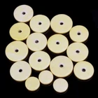 Description Item Description: Function: Make your playing with flute more comfortable Feature: - 16pcs flute leather cushion - Replace worn and non-functioning flute cushion - Durable and convenient - Easy to use and install Quantity: 16Pcs 3 x Pad (Diameter 19.5mm) 8 x Pad (Diameter 18mm) 2 x Pad (Diameter 16.5mm) 3 x Pad (Diameter 12mm) Color: Yellow Material: Leather Product Weight: 5g Package Size: 120 x 80 x 5mm Package Weight: 6.0 G / 0.21 Ounces Package Dimensions (L*W*H): 110*80*60 MM / 4.33*3.15*2.36 Inches Retail Packaging: Yes, General Box Package Including: 16 x Flute Leather Pad