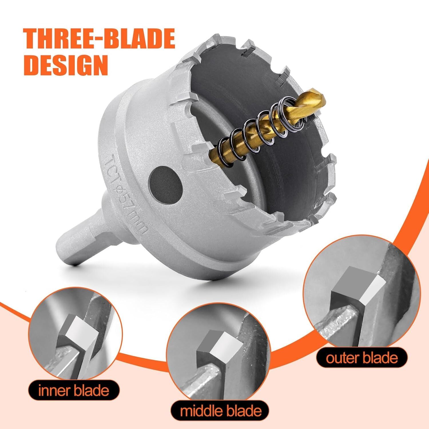 Carbide Hole Saw Kit for Metal - 16Pcs TCT 5/8"-2-1/4" Inch Hole Cutter Set, for Precision Of Cut: The hole saw is made from Tungsten Carbide Tipped teeth and designed with Three-blade, Including the outer blade, middle blade, and inner blade, to ensure sharper for clean and smooth holes, with minimal chipping and dulling Great Quality: Our hole saw kit is made of high-speed steel and coated with titanium to reduce wear and improve durability.All sizes are designed with chip removal holes which are effective chip exit paths and self-clear Wild-Application:The carbide hole saw kit is compatible with hand-held electric drills, CNC drilling machines, and so on. Drill straight true holes and cut quickly through hard metals, stainless steel, square tubes, iron, brass, etc Complete Set: Our package includes 12 sizes - 5/8”(16 mm), 3/4”(19 mm), 7/8”(22 mm), 1”(25.5 mm), 1-1/8”(29 mm), 1-1/4”(32 mm), 1-3/8”(35 mm), 1-1/2”(38 mm),1-3/4”(45 mm), 2”(51 mm), 2-1/8”(54 mm), 2-1/4”(57 mm); four drills, two L-wrenches, a carry case Safety Warning: Safety equipment such as a face shield(or coverage goggles) and gloves are a MUST! Fling sharp metal chips could cause serious injury, and use a chip brush and shop vac for cleanup Shipping We offer FREE shipping on all orders! We ship within Three business days of payment, usually sooner. Local pickups and combined shipping options are not provided at this time. Return You can return a product for up to 30 days from the date you purchased it. Any product you return must be in the same condition you received it and in the original packaging. Please keep the receipt. Payment We accept payment by any of the following methods: PayPal Please pay as soon as possible after winning an auction, as that will allow us to post your item to you sooner! Feedback Customer satisfaction is very important to us. If you have any problem with your order, please contact us and we will do our best to make you satisfied. Contact Us If you have any queries, please contact us via ebay. We usually respond within 24 hours on weekdays. Please visit our eBay store to check out other items for sale! Thank you for shopping at our store.