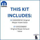 Message Us BRAND NEW MOPAR GENUINE ORDERS ARE SHIPPED SAME DAY IF PLACED BEFORE 5 PM EST If Express or Expedited shipping is not available, please contact us. GENUINE MOPAR PARTS # 53022088AD, 53022087AC 8X of 53022088AD & 8X of 53022087AC Key Features: Quality and Fit OEM Standards 100% Genuine Part Ready to Order? Don't miss out on this high-quality, genuine part. Order now and enjoy fast shipping! If you are not sure this will fit your vehicle, please message us your VIN before ordering to verify compatibility.