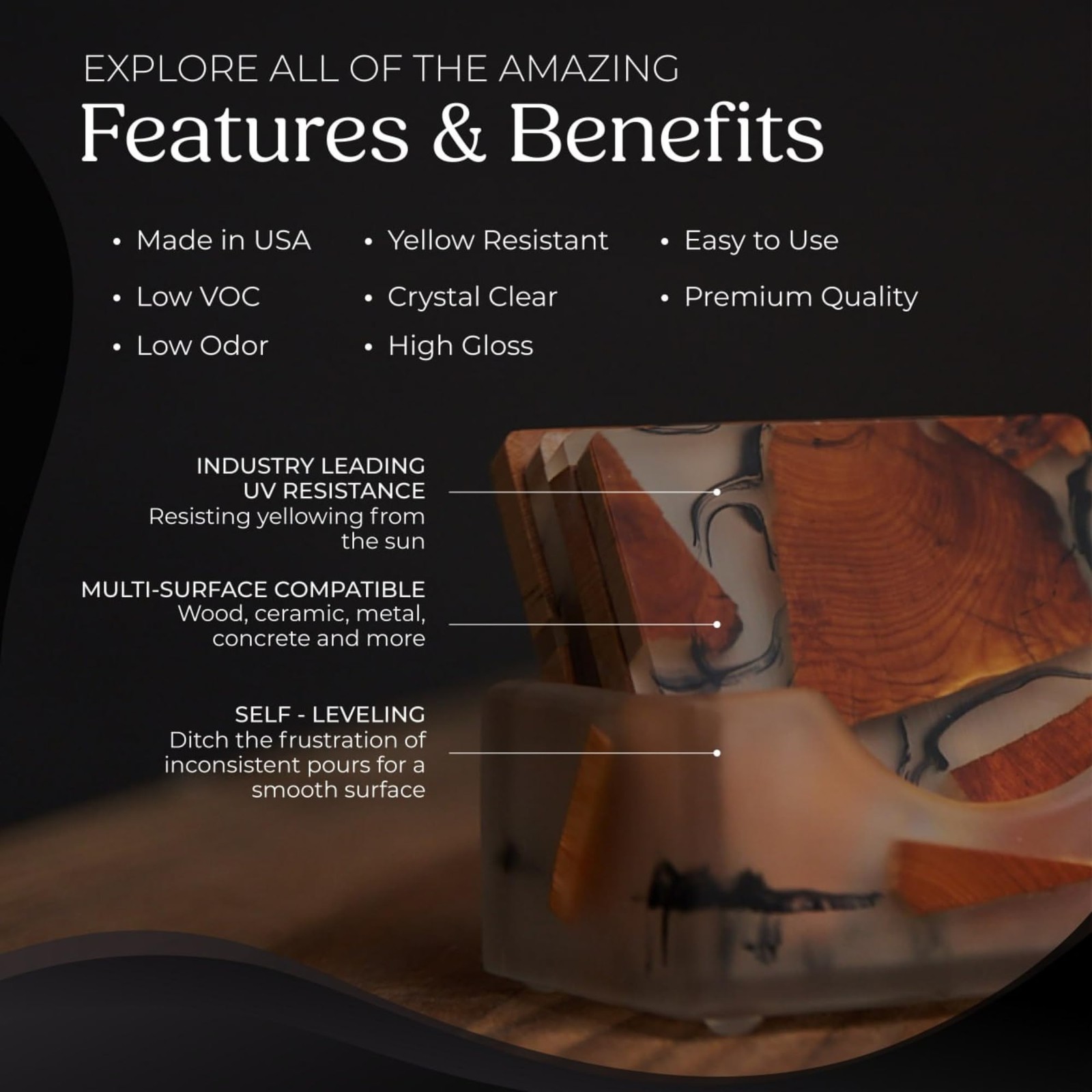 Shield your works of art from damaging UV rays while indulging in your favorite crafts with Promise's UV-Art Epoxy Resin. Specially formulated to resist yellowing caused by sunlight, this self-leveling epoxy ensures both stunning clarity and reliable protection for your masterpieces, safeguarding against impacts, corrosion, and water damage. With a perfect 1:1 mixing ratio, it offers an industry-leading UV resistance that keeps your creations vibrant over time. This versatile resin is also compatible with pigments and dyes, making it an excellent choice for a jewelry making, craft kit, and resin charms. Whether you're creating, sealing, or coating artwork, wood, photography, coasters, tabletop and more, Promise UV-Art Epoxy Resin provides a durable, glossy finish that lasts. Trust in Promise Pro Art to adorn your home with your own creations while ensuring their long-lasting beauty, and rest assured that UV-Art's flowing formula suits various surfaces like wood, canvas, metal, plastics, glass, and beyond. Professional and DIY - Art Resin is user-friendly, perfect for both professional artists and DIY enthusiasts, offering superior protection and gloss for your art pieces. Safety First - This clear epoxy resin is crafted from high-quality, non-toxic ingredients, making it 100% safe for indoor and outdoor use, free from harmful fumes, reactions, or chemicals. Glossy Finish - Our art resin kit provides a brilliant shine, thanks to its self-leveling formula and UV resistance, ensuring a lasting gloss that withstands the test of time. Easy-to-Use Kit - This epoxy resin kit is ideal for beginners and pros alike, featuring a 1:1 ratio and smooth texture. Each kit includes 8 Oz of resin and 8 Oz of hardener, covering all your needs. American Made Excellence - With over 40 years of experience, brings American-made quality to the forefront of epoxy resin craftsmanship. Our focus on formula perfection sets our products apart.