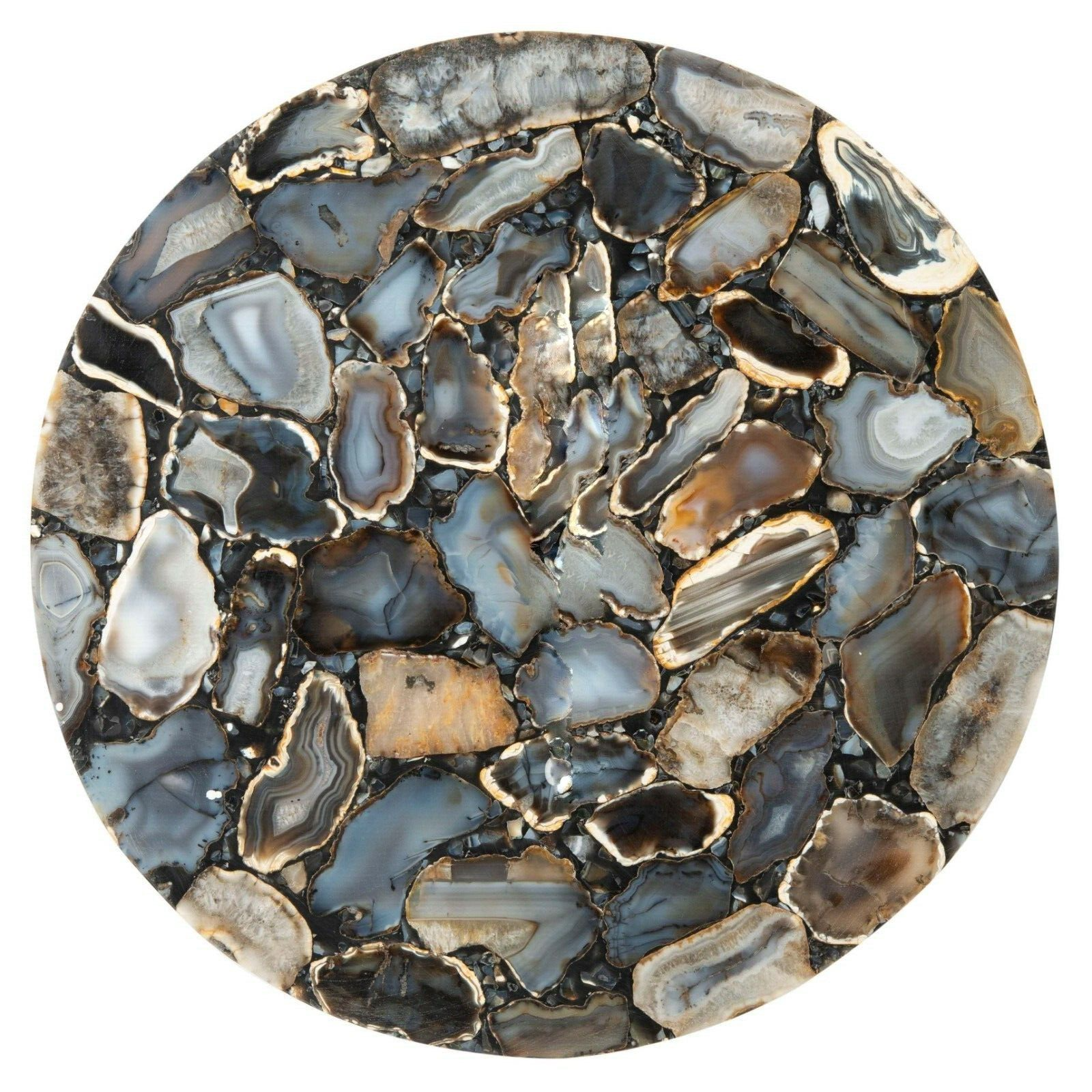 Welcome To Stone-Craft- Creations Shop Description Very unique Art by Indian Artist ,Coffee/Side Table top Used Material: Natural Agate Stones Arts Size: 16"x16" Inches Color: As Photo Shape: Round Pattern: Handmade Room: Bedroom, Dining Room, Hallway, Home Office/Study, Kid’s Bedroom, Kitchen, Laundry/Utility Room, Living Room,Patio, Playroom Packaging: Wood & Foam Export Packing Shipping: Air Can Be customize ,Please Message us your desired Size 1. It can be used as a Dining Table, Guest table, coffee table, center table top in show room as well as a gift for your loved ones. 2. The table top is made in Agra India & fully handmade. 3. The top will be delivered by FedEx or DHL free of cost door to door. 4. If there is any local tax,custom duties or Vat will be paid by the buyer at the destination. 5. The parcel is dispatch with proper packing & fully insured covering all kind of risk. 6. To maintain the table top is simple soap & water & dry cotton cloth. 7. If You Are Looking Something Customize, Let Us Know We Will Make For You As Per Your Design, Size & Shape. 8.Table top does not includes any wooden, marble stand or base if you like to buy marble or wooden base or stand that will be charged extra. Marble Agate Table Tops We are Manufacturer & Exporter of marble agate table tops. These marble agate table tops have different shapes like Round Table top, Octagonal Table Tops, Rectangle / Dining table tops, Square Table tops, Chess Table tops, Taj Mahal Table tops, Custom Designs Table tops also make marble Table top Base and Stand. Then we can be used as dining tables, coffee tables, Center tables, conference tables, chess boards, reading tables, bar tables , Garden table, side and corner tables or any other use as per the indoor and outdoor decor. They can also be placed outdoors in the garden, as marble is stain free, offers great resistance to the forces of nature, and can withstand heavy temperatures. We also meet customized requirement and offer our marble table tops at industry leading prices. About Agate Stone- Agate is a rock consisting primarily of cryptocrystalline silica, chiefly chalcedony, alternating with microgranular quartz. It is characterized by its fineness of grain and variety of color. Although agates may be found in various kinds of host rock, they are classically associated with volcanic rocks and can be common in certain metamorphic rocks. Ancient use of agate stone Agate is one of the most common materials used in the art of hardstone carving, and has been recovered at a number of ancient sites, indicating its widespread use in the ancient world; for example, archaeological recovery at the Knossos site on Crete illustrates its role in Bronze Age Minoan culture Types Of Agate 1. Fortification Agate This is the most common and distinctive type of agate. In these agates, bands crystallized into concentric layers that more or less follow the shape of the cavity. The banding resembles an aerial view of a fort 2. Water-Line Agate (also called water-level or onyx) During its formation, silica-rich solution either entered the cavity slowly laying one band at a time, excess water drained out leaving a small amount of silica to settle out into separate bands, or the vesicle filled under low pressure. In any case, the silica crystallization in water-level agates is controlled by gravity in one orientation, forming a stack up of parallel bands. 3. Shadow Agate Some agates exhibit a shadow effect in which there is what appears to be movement across the agate layers when the specimen is rocked back and forth (or your orientation to the specimen moves). This optical effect only occurs when there are alternating translucent and opaque bands. It is caused when light goes into the agate, but is not reflected out. 4. Tube Agate Tube Agate During the formation of some agates, parallel projections of tiny hair-thin mineral rods grow first within the silica gel, around which later the chalcedony agate micro-crystals form. In some cases the inclusions remain, but sometimes they weather away leaving hollow tubes that subsequently fill in with silica. 5. Eye Agates This mysterious agate characteristic is believed to be formed when most of the silica gel drains from the cavity, leaving only a droplet that “beads up” on the inside wall of the cavity. This droplet crystallizes into solid chalcedony “eyes”. In some cases, crystal growth will continue from this droplet in a manner similar to the formation of stalactites in caves. Later, the pocket fills in with the usual deposition of chalcedony microcrystals. 6. Plume Agate These agates initially had formations on their outside layer that formed prior to the deposition of chalcedony bands. They are filament growths of mineral inclusions that resemble ferns or feathers. 7. Geode Agate Geode Agate In some cases the supply of silica-rich water runs out before the entire cavity fills in. When there is a hollow center within a crystalline outer fill, the specimen is considered a geode. Not all geodes have agate banding, but many do. Also, the inner layers can form into several different types of silica mineral crystals and may even have other types of mineral crystals. 8. Moss Agate Moss Agate Moss agates have clusters of mineral inclusions that resemble plants, trees, or landscapes. Most moss agate inclusions are comprised of iron or manganese oxide. In some cases, the inclusions inhibit chalcedony banding allowing the mineral clusters free reign to grow within the silica gel. 9. Seam Agate Seam agates for in cracks within host rock, rather than in rounder pockets. The bands form in parallel rows that follow and fill in the crack or seam.