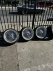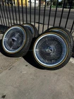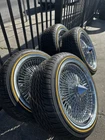 Upgrade your vehicle's appearance and performance with this set of four 17" chrome plated wire wheels from LA Wire. Designed with a 100-spoke style and straight lace, these wheels are compatible with passenger cars and feature a gold white sidewall for a sleek look. The wheels have a bolt pattern of 5x114.3 (5x4.5) / 5x120 (5x4.75) / 5x127 (5x5) and come with a load index of 98, making them suitable for XL loads. The Vogue Custom Built Radial tire model has a tread depth of 11/32" and a tire diameter of 25.9". These all-season tires have a DOT date code of 2023 and are constructed with R (Radial Ply Belted) tire construction. With a package quantity of 4, these wheels are perfect for those who want to enhance their car's appearance and performance. Shipped via UPS Ground