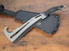 This 17" clawhook machete is a heavy-duty weapon perfect for combat, survival, and everyday carry. The blade is made of 440 stainless steel with a combination edge and a black color that adds a sleek touch to the design. The tang is full, and the dexterity is ambidextrous, making it suitable for both left- and right-handed individuals. The blade length is 11 inches, and the handle is made of durable rubber that ensures a comfortable grip and prevents slipping. The sheath comes with a shoulder back strap, making it easy to carry the machete wherever you go. This original Sierra Zulu brand machete is a modern fixed blade that is factory manufactured in China. The year of production is 2024, and it is a collectible item that will come in handy for any outdoor adventure. Machete with Nylon Sheath - Stainless Steel Blade - Rugged TPR Handle - Tactical Nylon Sheath with Shoulder Strap - Best Brush Clearing Tool, Machete for Cutting Trees and Yard Work Description Unleash the power of the Clawhook Machete, a rugged and versatile tool designed to tackle the toughest outdoor challenges. With a commanding 10.7-inch straight-edge blade, this machete is crafted for precision and power, making it an essential companion for survivalists, outdoor enthusiasts, and adventurers. The unique Karambit handle hole adds a tactical edge, allowing for enhanced control and a variety of gripping options, making the Clawhook Machete stand out in both form and function. The rugged TPR handle ensures a secure and comfortable grip even in demanding situations, providing confidence and control during use. The straight-edge blade design makes this machete ideal for a wide range of cutting tasks, from clearing brush to preparing campsite essentials. The tactical nylon sheath, included with a convenient shoulder strap, offers secure and accessible storage, ensuring that your Clawhook Machete is always ready for action. Built for durability and performance, the Clawhook Machete is a versatile tool that combines precision, strength, and tactical design. Elevate your outdoor experience with a machete that's ready to tackle any adventure. Features & details Versatile Machete Design: Featuring a 10.7" straight-edge blade with a distinctive claw hook, this machete is crafted from durable 3CR13 stainless steel, making it a versatile tool for outdoor enthusiasts and survivalists. Karambit Handle Hole: The integrated karambit handle hole adds a tactical edge, allowing for enhanced control and multiple grip options, making it suitable for a variety of cutting tasks. Rugged Construction: The black powder-coated finish not only adds a sleek appearance but also provides corrosion resistance, while the rugged TPR handle ensures a comfortable and secure grip in any situation. Tactical Nylon Sheath: The machete comes complete with a 1680D tactical nylon sheath featuring a shoulder strap and belt loop, allowing for convenient and secure carrying options whether you're hiking, camping, or exploring the wilderness. Multi-Functional Tool: Ideal for bushcraft, camping, and survival scenarios, this clawhook machete is a reliable companion for those who demand a versatile, durable, and tactical cutting tool.