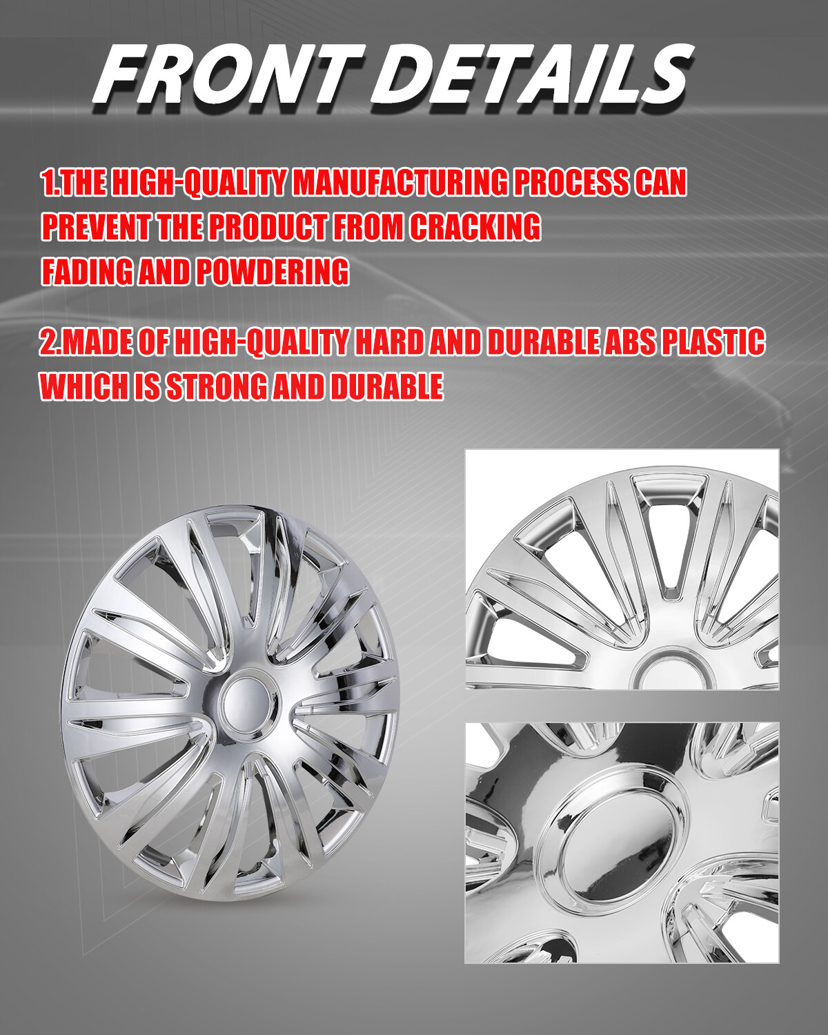 Store Categories Other Car Refrigerator Front Bumper Rear Bumper Fender Flares Inner Fenders Side Steps Running Board A-Pillar Light Mount Brackets Headlights Taillights Fog Lights LED Headlights LED Taillights LED Fog Lights Jeep Chevrolet Ford Toyota Dodge GMC Product Features ✴ PERFECT FIT: This wheel hub cap is specifically designed to perfectly fit for 17-inch wheels, ensuring a seamless match and enhanced aesthetics. It complements the overall design of the vehicle, elevating its visual appeal. ✴ HIGH-QUALITY MATERIAL: Constructed from high-quality materials, this wheel hub cap guarantees durability and longevity. It withstands various road conditions and environmental factors encountered during daily driving, maintaining its pristine condition. ✴ EASY INSTALLATION: Installing this wheel hub cap is a breeze and requires no specialized tools or modifications. It comes with a user-friendly system, allowing for a hassle-free installation process by following the provided instructions. ✴ PROTECTIVE FUNCTION: Besides its aesthetic appeal, this wheel hub cap serves as a protective barrier for the wheels. It prevents scratches and potential damage caused by stones, debris, or other objects, safeguarding the wheel's surface. ✴ AFTER-SALES SERVICE: If There Is a Loss of Product Parts, or Any Parts of The Problem, We Can Provide After-Sales Service, Please Contact Us on The Order Page. Product Specificataion ✴ Type: Hub caps ✴ Number in Pack: 4 ✴ Color: Chrome ✴ Material: ABS ✴ Compatible Wheel Diameter: 17 in ✴ Finish: Glossy ✴ Installation Type: Snap-On ✴ Model: Universal Hubcap for Iron Wheels , Not fit for Chevy Equinox All Models, TOYOTA SIENNA 17 inch models, VOLKSWAGEN GOLF 17 inch models Not fit for: 2010-2011 Fusion Steel Wheel 2013-2018 Toyota RAV4 Steel Wheel 2010-2011 Mercury Milan Steel Wheel 2008-2012 Chevy Malibu Steel Wheel 2007-2010 Pontiac G6 Steel Wheel 2007-2010 Saturn Aura Steel Wheel 2007-2010 Saturn Aura Hybrid Steel Wheel 2013-2020 Dodge Journey Steel Wheel 2015-2020 Dodge Grand Caravan Steel Wheel 2011-2016 Chrysler Town & Country Steel Wheel 2009-2017 Chevrolet Traverse Steel Wheel 2023-2025 Toyota Prius/Prius Prime Alloy Wheel What You Get ✴ 1 Set of 4 Hub caps and 4 retention rings Payment Delivery details Terms of sales About us Contact us Payment We accept PayPal, credit card , Apple Pay & Google Pay etc. Delivery details All items will be shipped within 1-3 business days after payment received, we will try our best to ship out as soon as we can, hope for your understanding. Please double confirm your address and contact information, which will help the delivery faster and more accurately. Note :buyers who purchase international products need to pay import tariffs!!! Terms of sales Professional installation is highly recommended. Any problem of the item please feel free to contact us first , please D o Not leave negative feedback before that, or simply return it within 60 Days in original condition. We will resolve it for you ASAP. About us Any questions please do not hesitate to contact us directly by eBay message . We will reply you within 24 hours asap, thanks for your understanding. Contact us Should you have any problem or require any further information please feel free to contact us . If you are satisfied with our product and service, please kindly leave us a positive feedback. Popular Categories On May 23, 2025 at 19:17:12 PDT, seller added the following information: