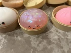 The product is a set of 17 colorful dumplings that are partially opened and come with a glitter dumpling and two empty ones, all in an opened box. These dumplings are likely to be a collectible item that has gained popularity online, possibly used for advertising or as a unique merchandise item. The multi-color design adds a playful and vibrant touch to the set, making it a visually attractive addition to any collection.