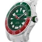 Gucci Dive Men's Green Dial Stainless Steel Watch - YA136222 ($1700 MSARP) The Gucci Dive Men's Green Dial Stainless Steel Watch (YA136222) is a bold and refined timepiece that combines Gucci’s iconic design with rugged functionality. Featuring a robust 45 mm stainless steel case and matching bracelet, this watch is built to make a statement. The uni-directional rotating bezel with a distinctive green and red inlay adds a signature touch of color and style, while the screw-down crown and solid case back enhance its durability. The vibrant green dial is both striking and functional, equipped with luminous silver-tone hands and index hour markers for excellent readability in all lighting conditions. Minute markers line the outer rim, and a convenient date display sits at the 6 o'clock position. The dial is protected by a scratch-resistant sapphire crystal, ensuring clarity and long-lasting wear. Powered by a reliable quartz movement, this analog watch keeps accurate time with minimal maintenance. Designed for those who demand both style and performance, the Gucci Dive watch is water resistant up to 200 meters (660 feet), making it suitable for swimming and recreational diving. A 20 mm stainless steel bracelet with a secure fold-over clasp ensures a comfortable and confident fit. With functions including date, hour, minute, and second, the YA136222 is a versatile accessory that effortlessly transitions from everyday wear to adventure-ready gear. Features Stainless steel case with a stainless steel bracelet. Uni-directional rotating stainless steel bezel with an inlaid green and red ring. Green dial with luminous silver-tone hands and index hour markers. Minute markers around the outer rim. Dial Type: Analog. Luminescent hands and markers. Date display at the 6 o'clock position. Quartz movement. Scratch resistant sapphire crystal. Screw down crown. Solid case back. Round case shape. Case size: 45 mm. Band width: 20 mm. Fold over clasp. Water resistant at 200 meters / 660 feet. Functions: date, hour, minute, second. Fast and Free Shipping You're already purchasing the item. Why pay additional for shipping, especially slow shipping? We get your order shipped out within 1-business day and delivered to your doorstep as quickly as possible. Competitive Pricing With our dynamic pricing model, our prices are always competitive. Our prices are some of the lowest that you will find on the internet. Rest assured that you're getting a good deal when purchasing with us. 30-day Money Back Guarantee We are committed to making sure that you leave this transaction satisfied. If you're unhappy with the product for any reason, you may return it back for your money-back or a replacement within 30 days. No questions asked!