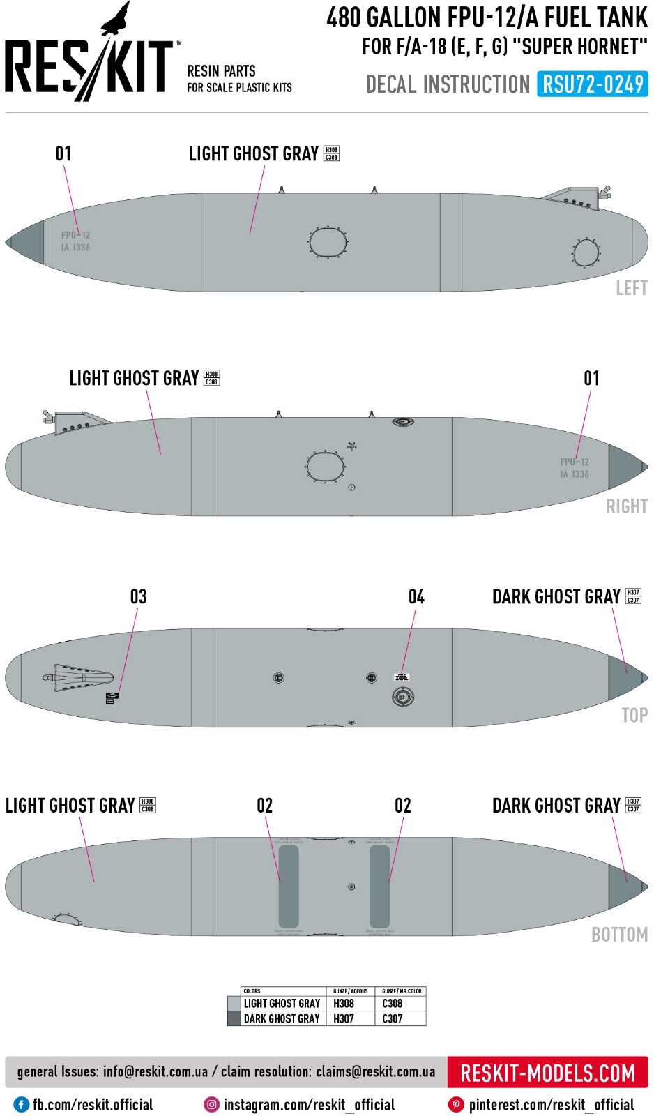480 gallon FPU-12/A fuel tank for F/A-18 (E,F,G) "Super Hornet" (1 pcs) (3D Printed) ResKit RSU72-0249 - for Plastic Model Kit Enhance Your Scale Models with ResKit | High-Quality Resin & 3D-Printed Accessories RESKIT - Accessories for Scale Plastic Kits Upgrade your scale model collection with high-quality resin parts from ResKit. Our Ukrainian-made parts are meticulously crafted to provide the most accurate and detailed representation of original components. Whether you're building aircraft, helicopters, military vehicles, or figures, ResKit has the perfect parts to enhance your project. Scale: 1/72 Manufacturer: RESKIT (Accessories for Scale Plastic Kits) Country/Region of Manufacture : Ukraine Condition : New in Box Category: Resin & 3D accessories Type of equipment : AIRCRAFT Type of product: FUEL TANKS Recommended kit: Any ResKit is a Ukrainian manufacturer of high-quality resin parts and accessories for scale models . The products are distinguished by a high level of detail and accuracy, which allows modelers to create the most realistic models of military equipment, aviation and other objects. Key Features: Premium Quality: Our resin parts are made with the finest materials and precision engineering. Extreme Detail: Experience unparalleled detail and realism in your models. Wide Range: Choose from a vast selection of parts for various scales and subjects. Easy to Assemble: Our parts are designed for easy integration into your existing model kits. Superior quality! ResKit parts allow you to create a model with incredible detail. ---------------------------- >>> Visit our eBay store! <<< You will find everything you need at great prices. Scale model accessories are a wide range of parts, spares, and components that can help you make your model even more realistic and detailed. In our catalog, you will find everything you need to assemble and repair model cars, airplanes, ships, tanks, and weapons. Our accessories are made from high-quality materials and meet all standards. We offer a wide range of models and sizes so you can find what you need. Buy scale model accessories in our store and make your model even more unique!