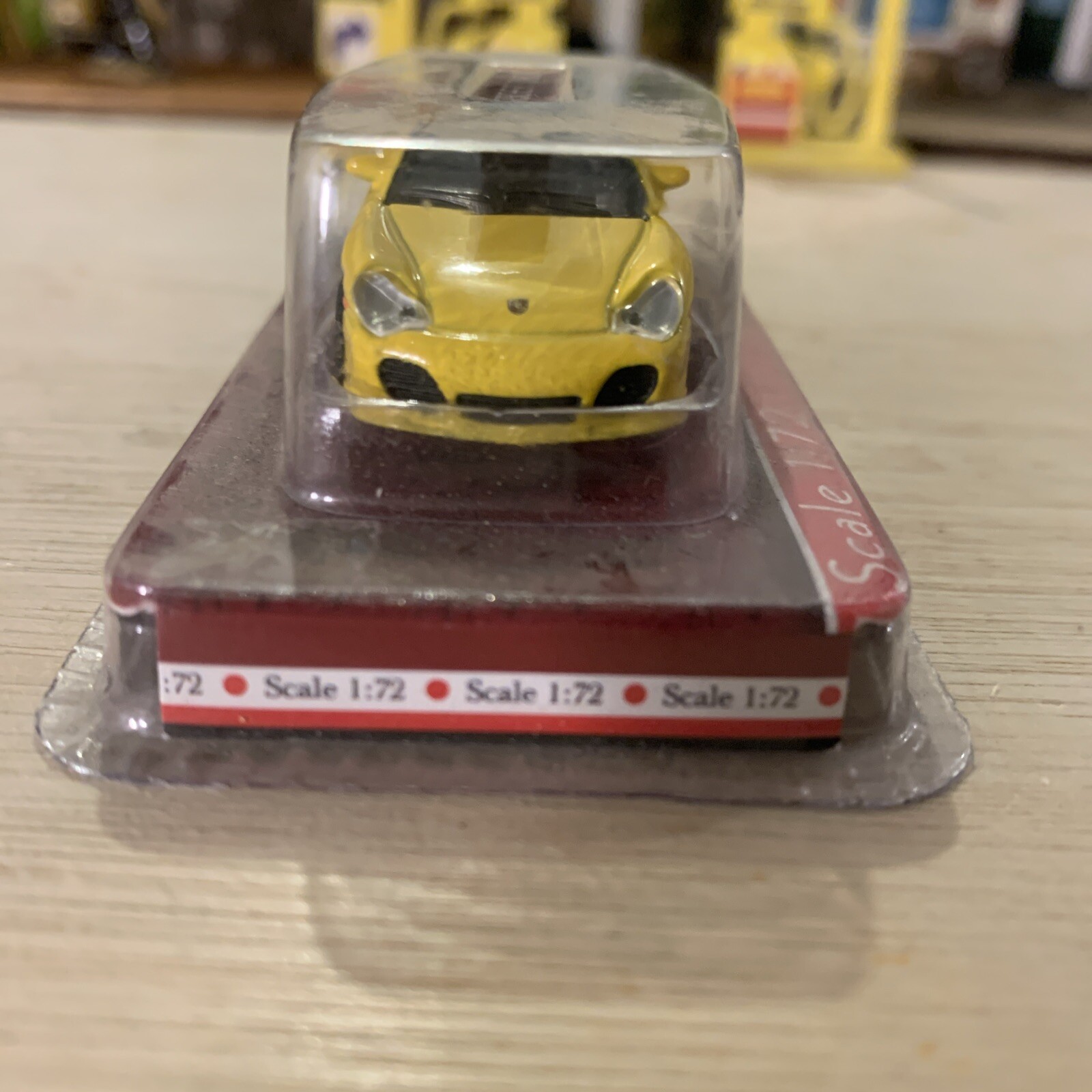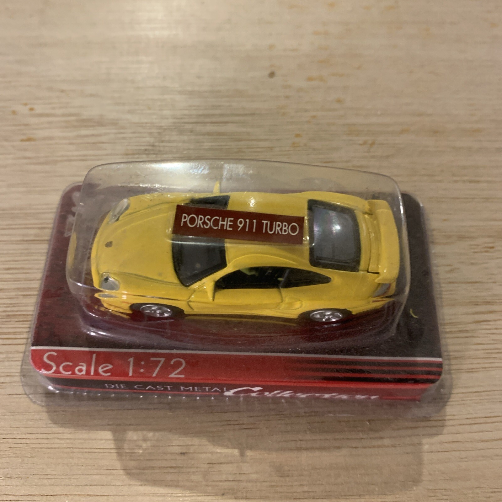 This is a 1:72 scale diecast model of a Yellow Porsche 911 Turbo manufactured by Yat Ming. The model is a toy and collectible vehicle designed to resemble a contemporary Porsche sports car. It is a new in box item,